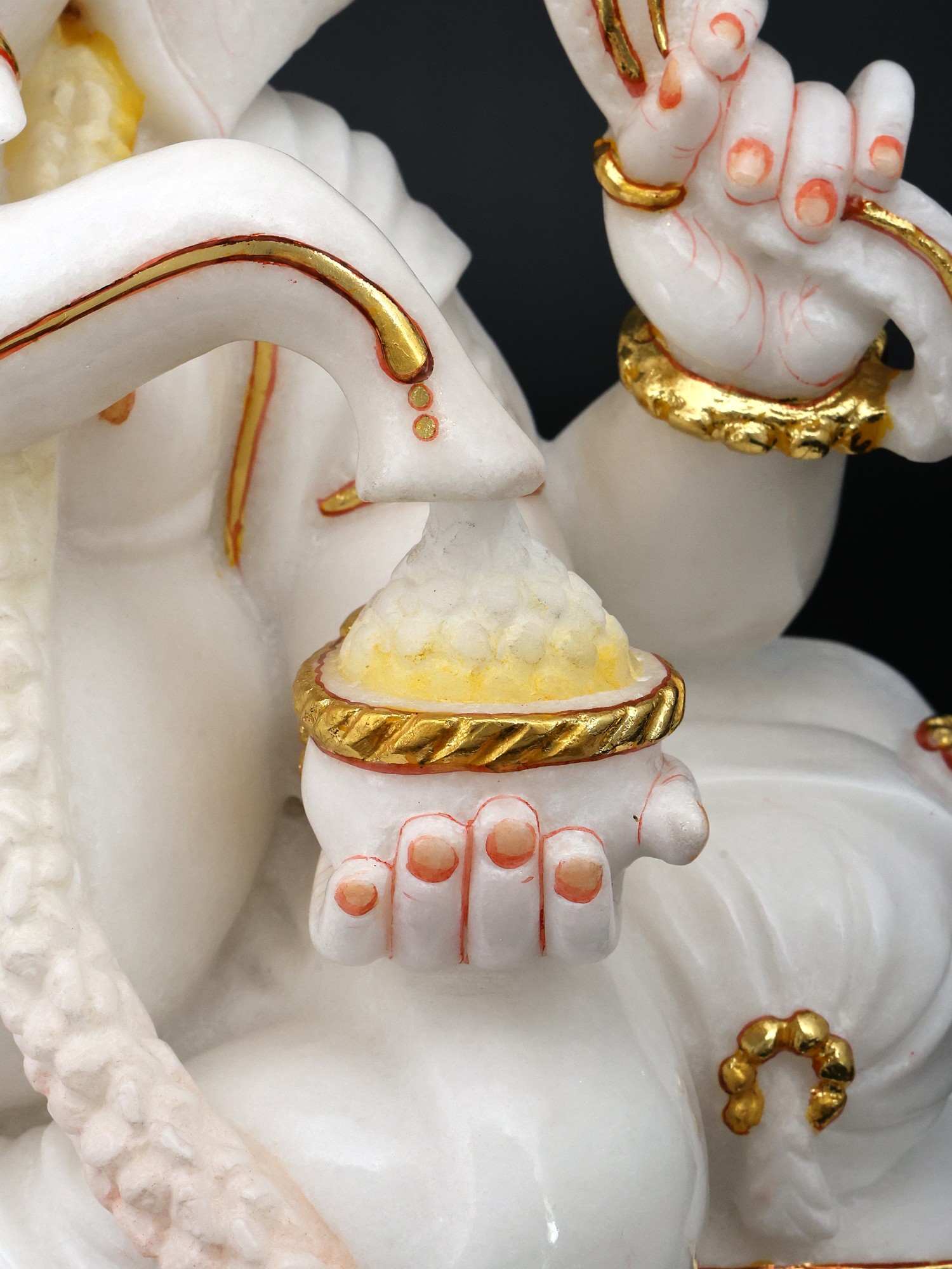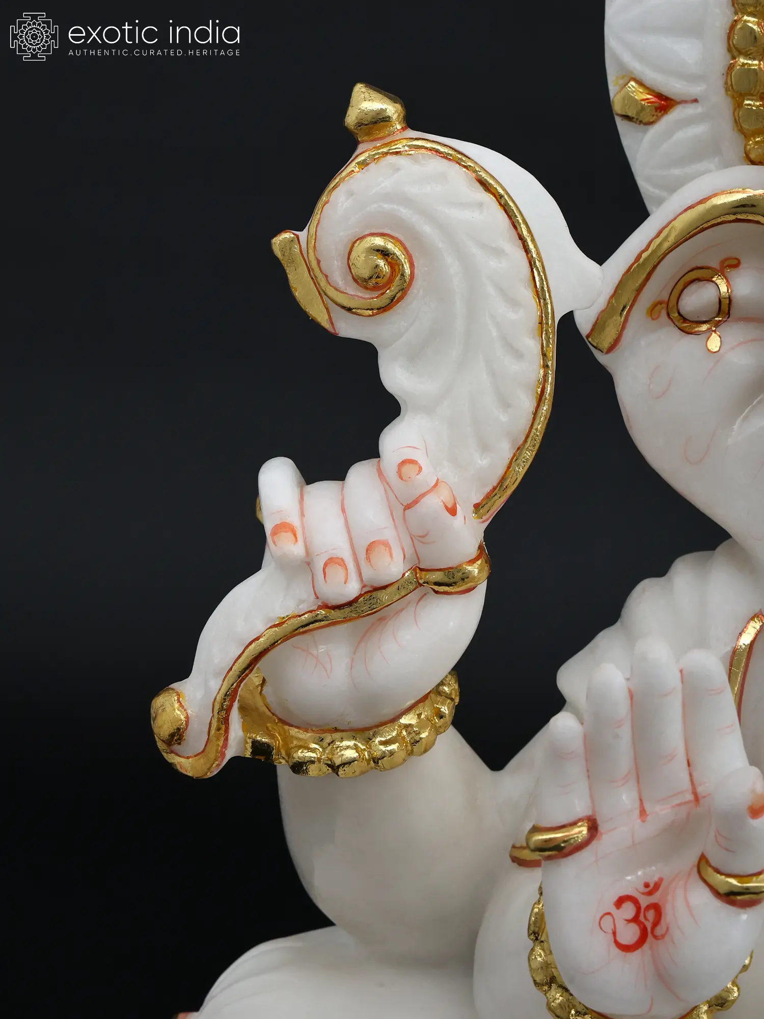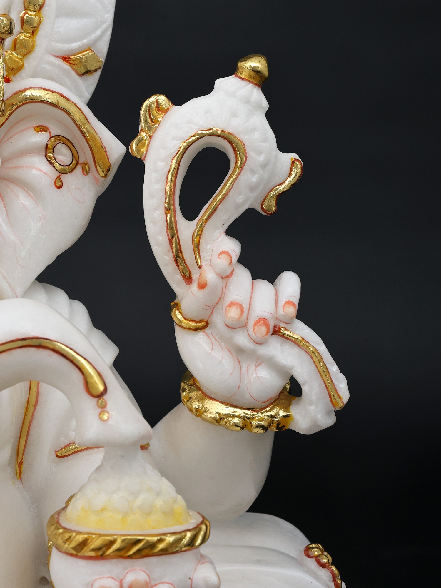 12" Four Armed Blessing Lord Ganesha | White Marble Statue