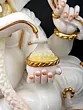 Crafted from the finest white marble, this piece is a testament to exquisite artisanal skill. Each curve and detail is meticulously carved, showcasing the natural beauty of the stone. The smooth, cool surface is then adorned with subtle yet impactful white and gold finishes, enhancing its regal aura. You'll sense the dedication poured into its creation, a fusion of traditional techniques and an artist's devotion.