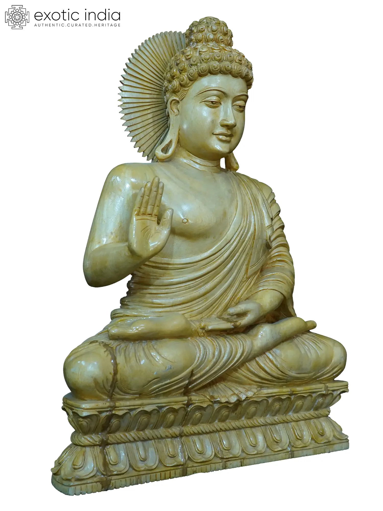 18" Standing Lord Buddha in Vitark Mudra on Lotus Pedestal | Wood Carved Statue