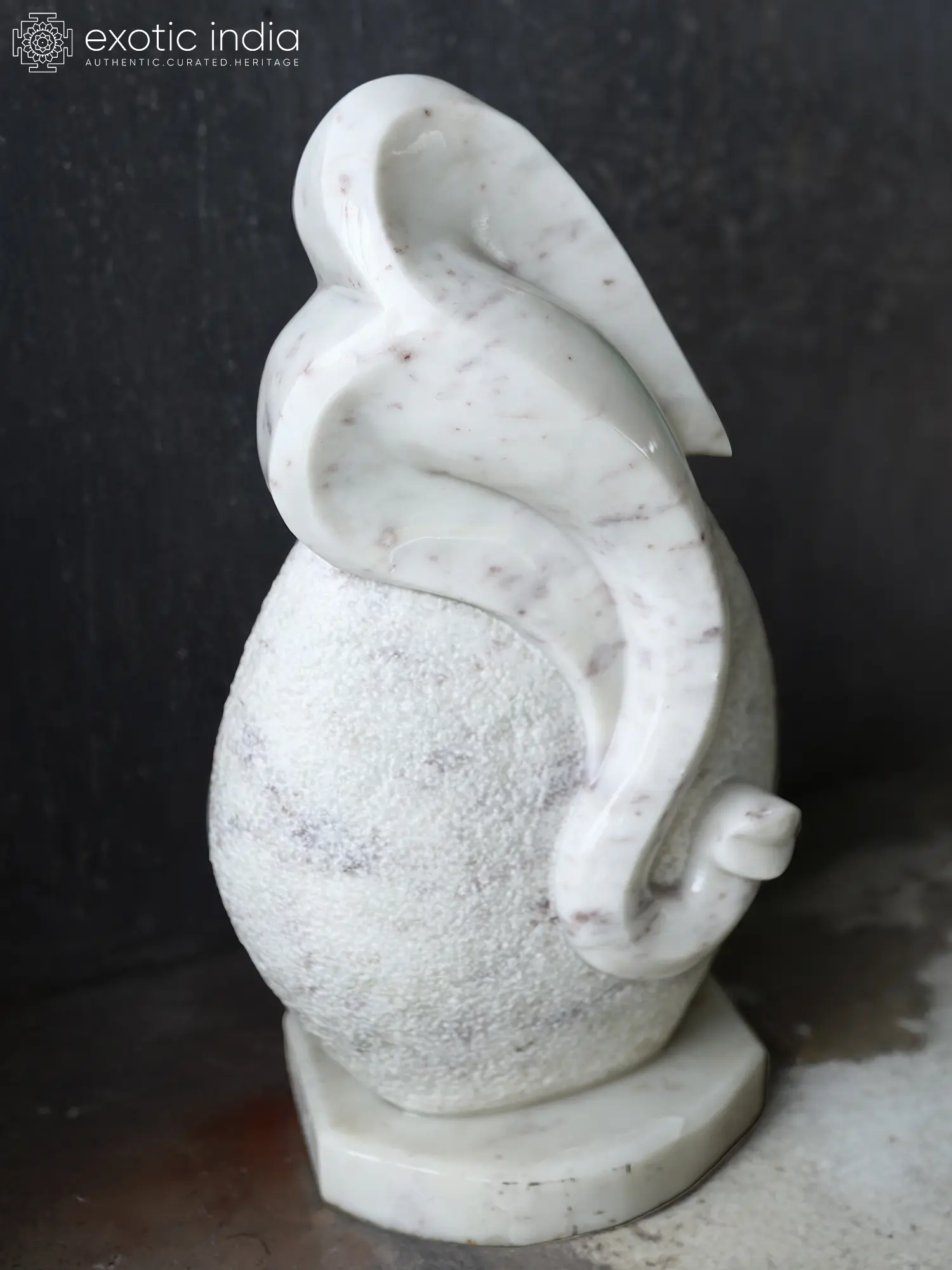 12" Lord Ganapati Statue With Om Symbol In Hand | Makrana Marble Idol