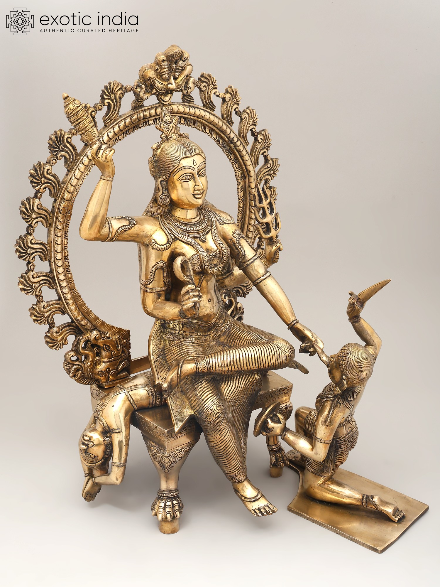 28'' Superfine Tripura Sundari (Rajarajeshwari) With Ganesha and Lakshmi | Brass