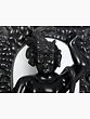 The presiding deity of the Pushtimarg (the path of grace) as known in the Vaishnava tradition of Hinduism - Shrinath Ji is worshipped as an incarnation of Lord Krishna in his Bala (child) avatar, majorly in the western parts of India. It is believed that this form of Goapala was self-actualized from the Hills of Govardhana. Made in opulent black stone, Srinathji stands on a pedestal inside a frame where he lifts the Govardhana Parvata up. On the Parvata, depicted are - Buddha, Snakes, Cows, a Lion, a Ram, a Parrot, and Peacocks; representative of Samsara guarded by him.
