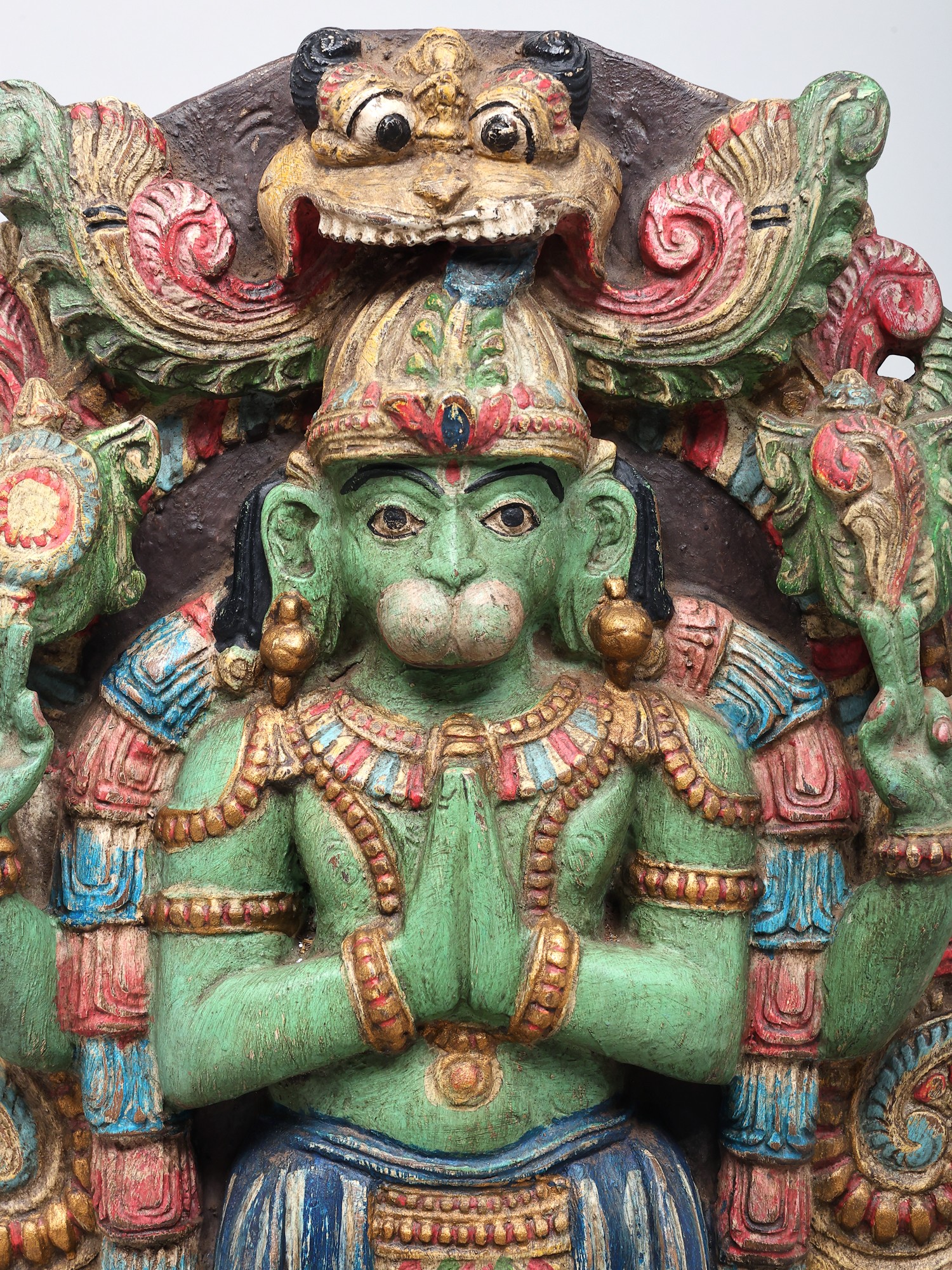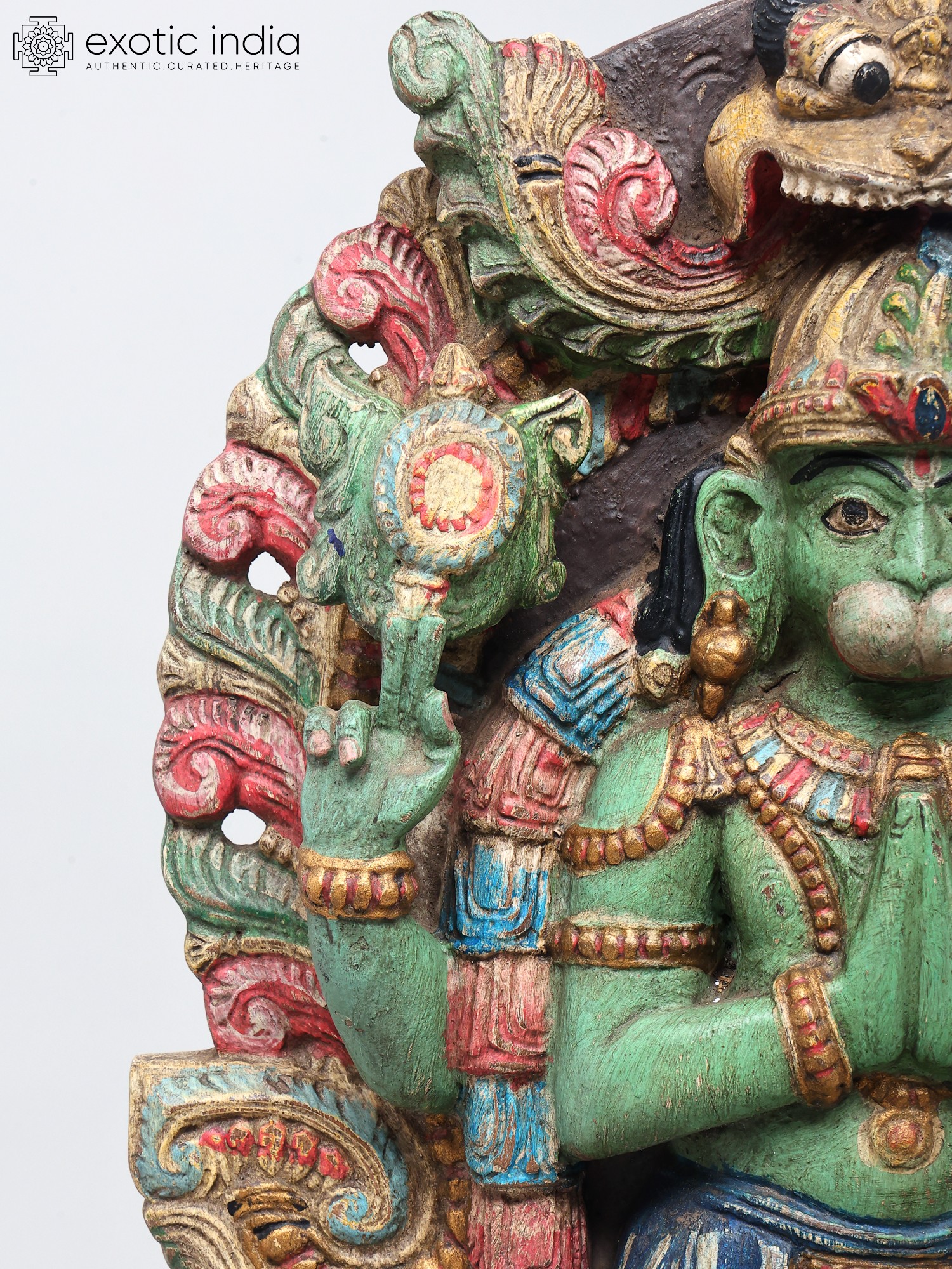48" Large Lord Hanuman Colorful Panel | Wood Carving | Wall Hanging