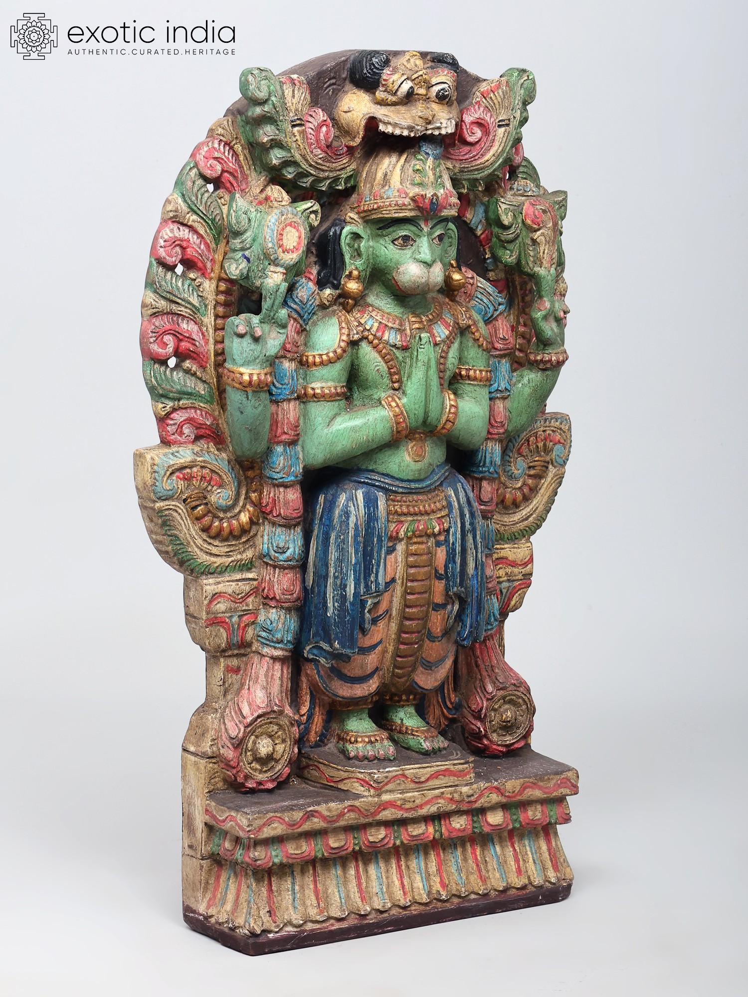 24" Colorful Fine Standing Lord Hanuman in Namaskar Mudra | Wood Carving