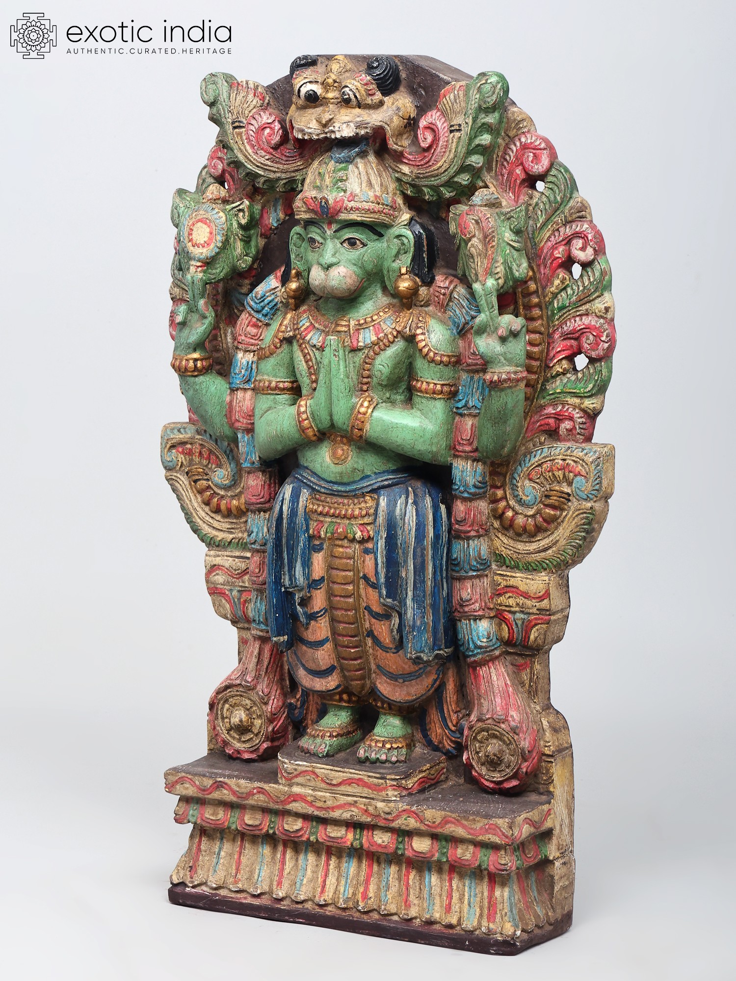 28" Adhyantha Prabhu (Half Ganesha Half Hanuman) | Wood Carving