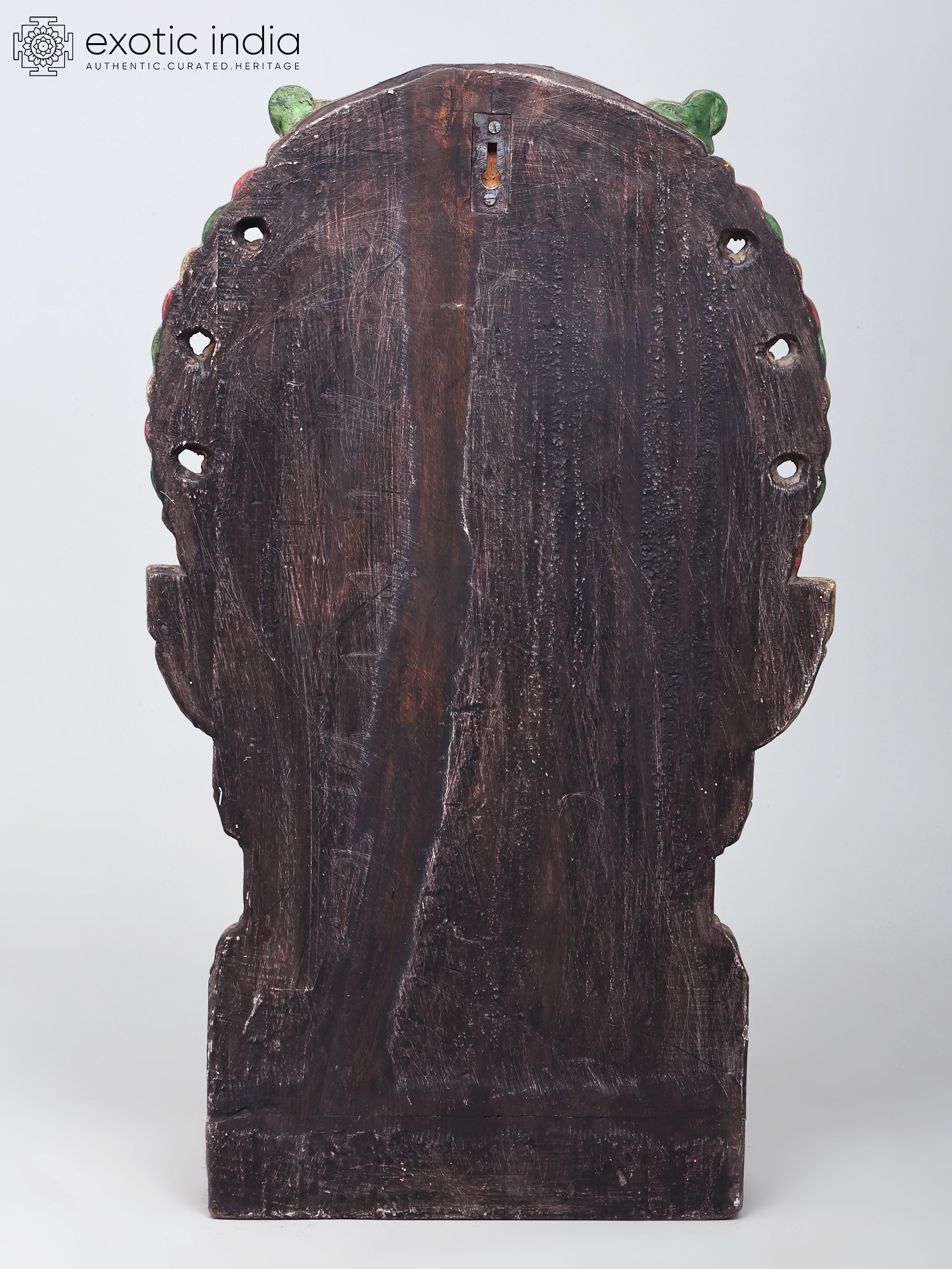 36" Large Colorful Lord Hanuman Head | Wall Hanging | Wood Carving