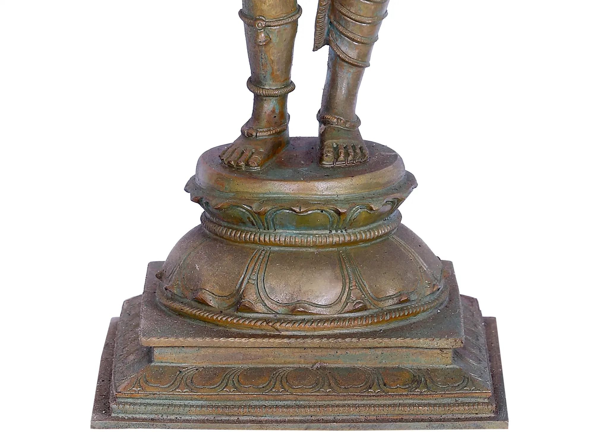 With finess in work, the details of ornamentation, flow of the graceful pose of Ardhanarishwara, and details of clothes and hair are all captured on the reverse of the idol as well, giving it an aesthetic richness. Blowing life in metal, Ardhanarishwara smiles benevolently, at Brahma’s creation which is created and sustained by their powers.