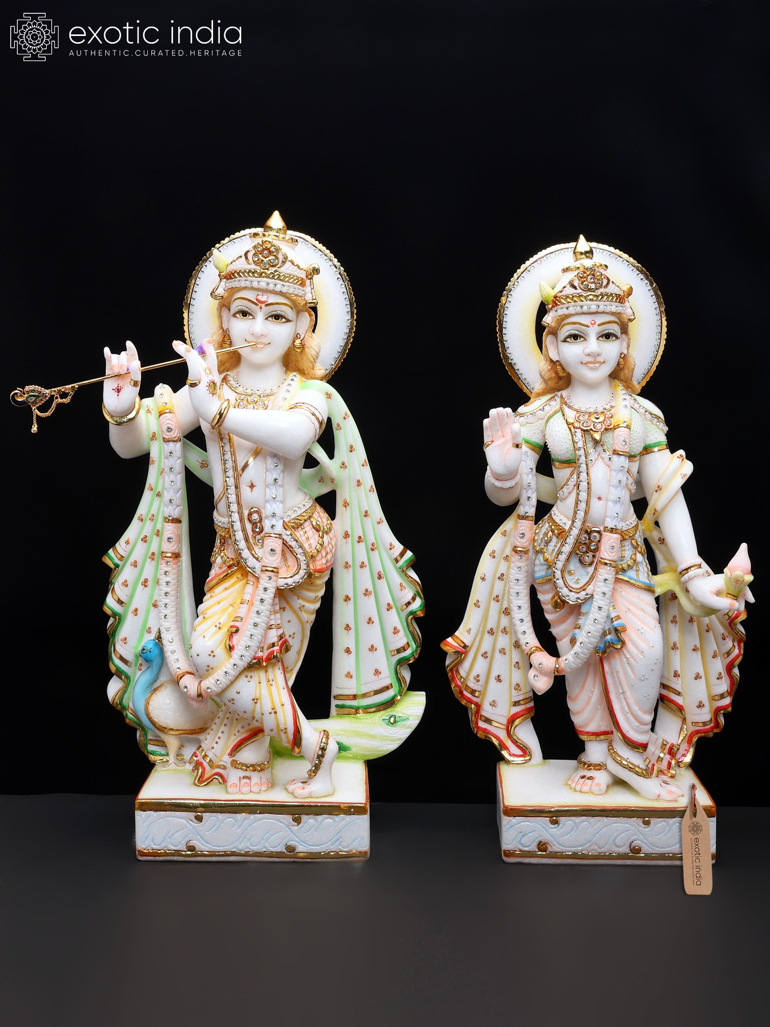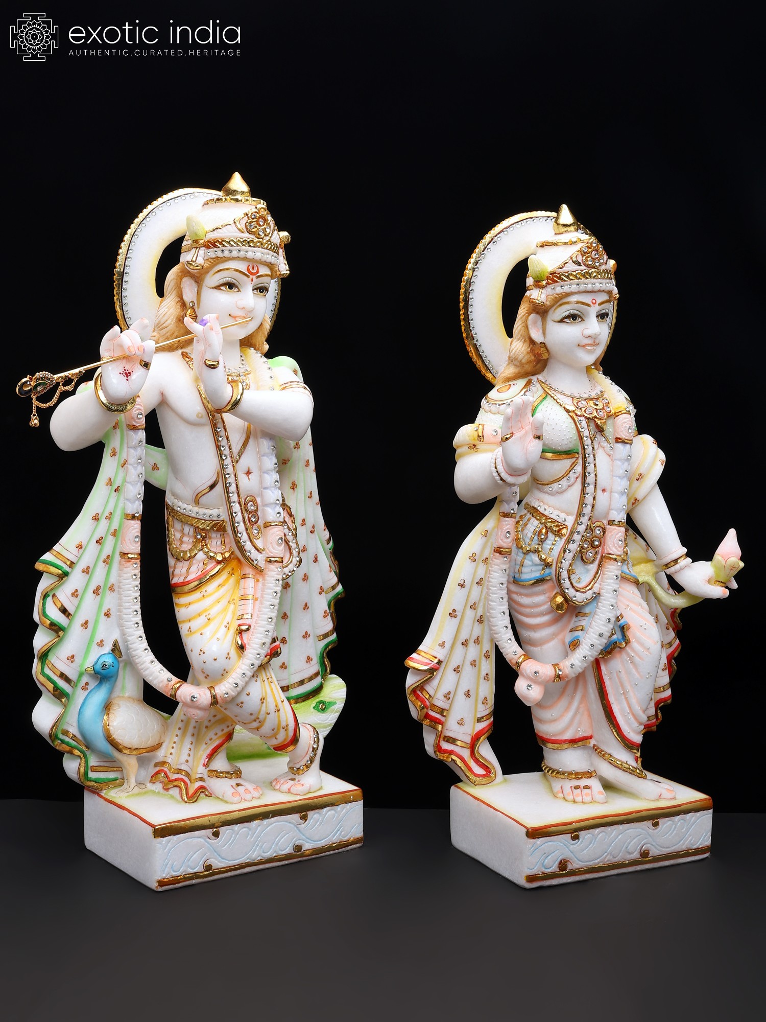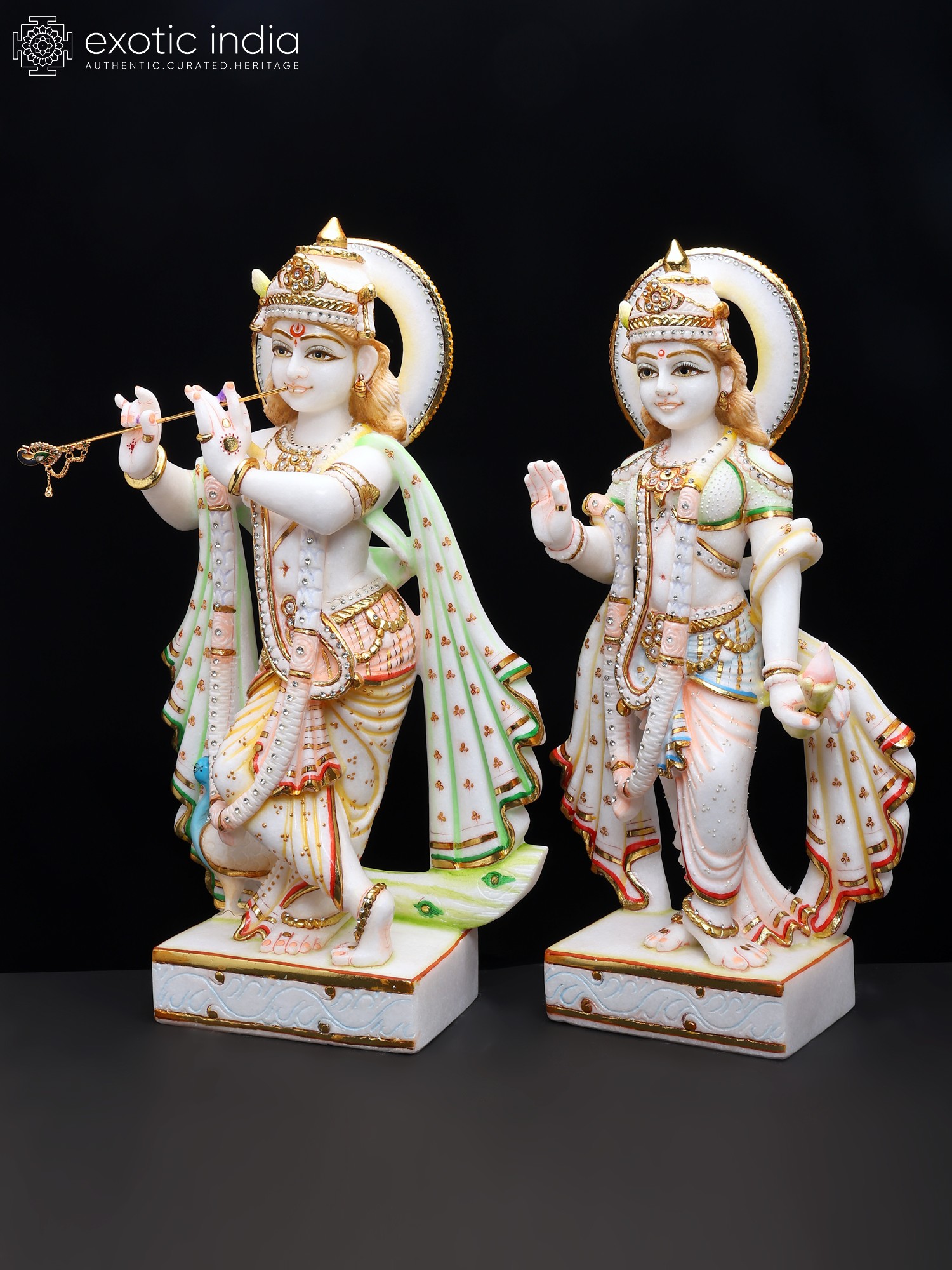 24" Standing Radha Krishna | White Marble Statues