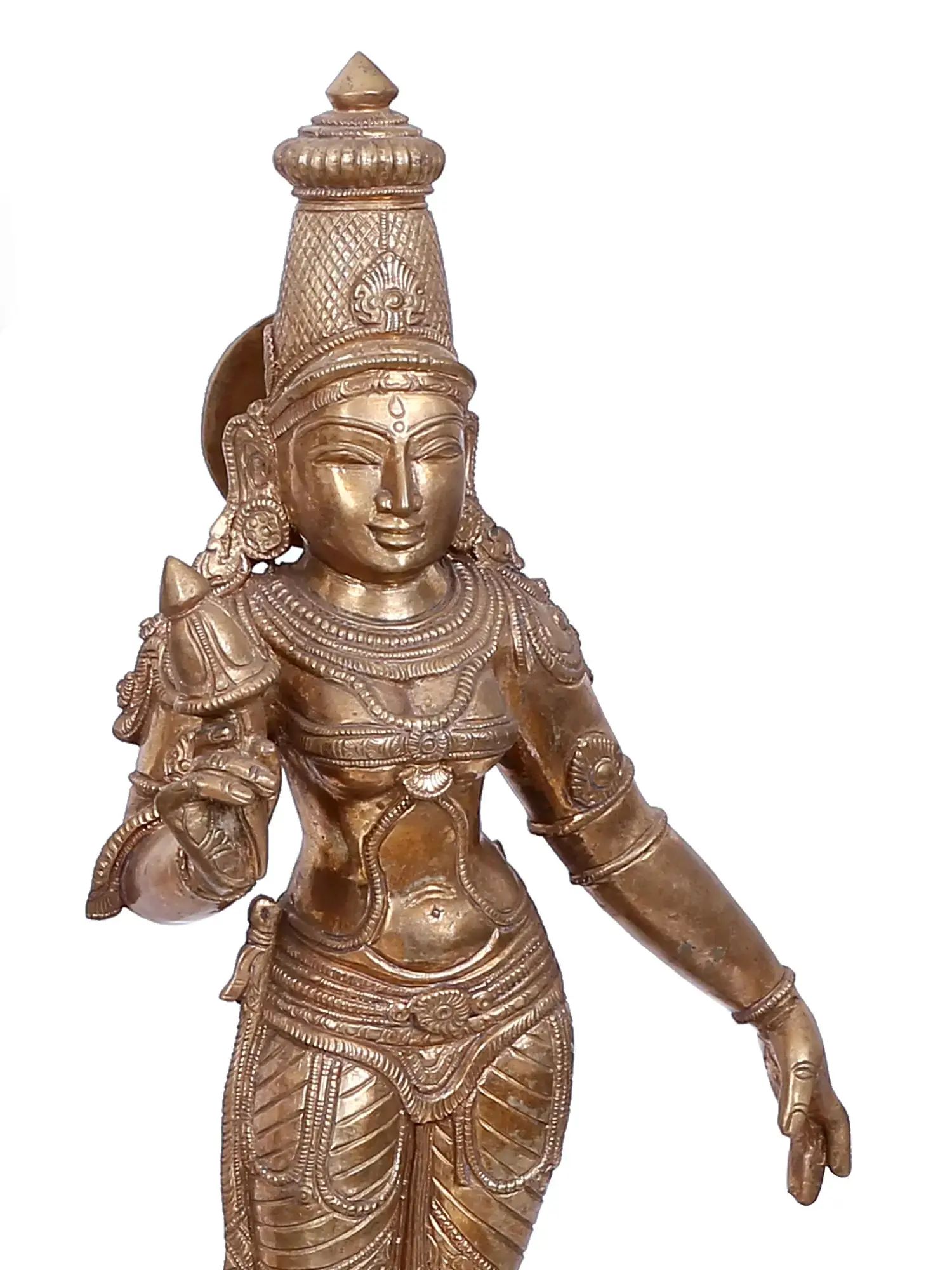As an artist's ode to the gentle yet majestic, Maryada Purushottama, this Panchaloha bronze Rama Darbar brings to us the most awe-inspiring form of Sri Rama, as the king of Ayodhya. Rama, Lakshmana, and Sita are adorned beautifully, inspired by the classical Chola bronzes of the trio. Accompanied by Sri Hanuman, this bronze Rama-Darbaar gives the devotee the joy of being eternally in the court of Ayodhyapati Rama.