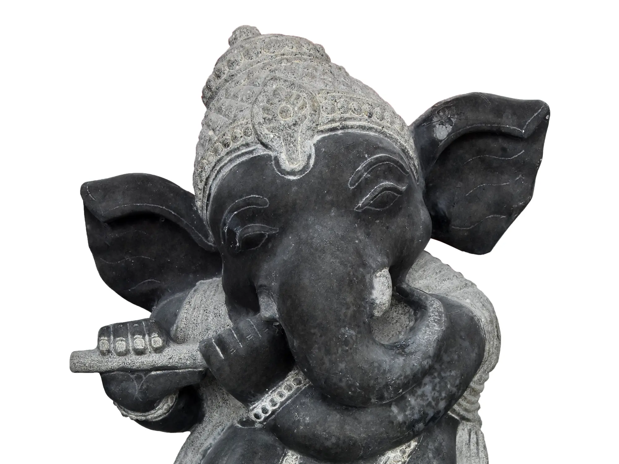 Crafted from granite, this statue depicts Ganesha in a delightful pose, holding a flute to his lips, symbolizing harmony, creativity, and the divine connection between music and spirituality.