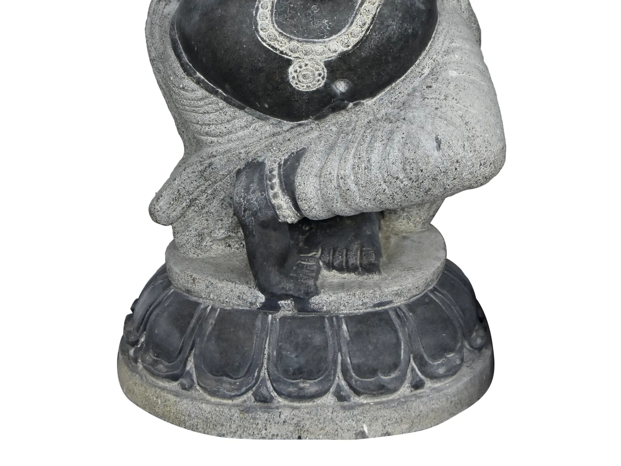 The intricate details of the statue highlight his traditional attire and the flute, emphasizing the artistry involved in its creation.