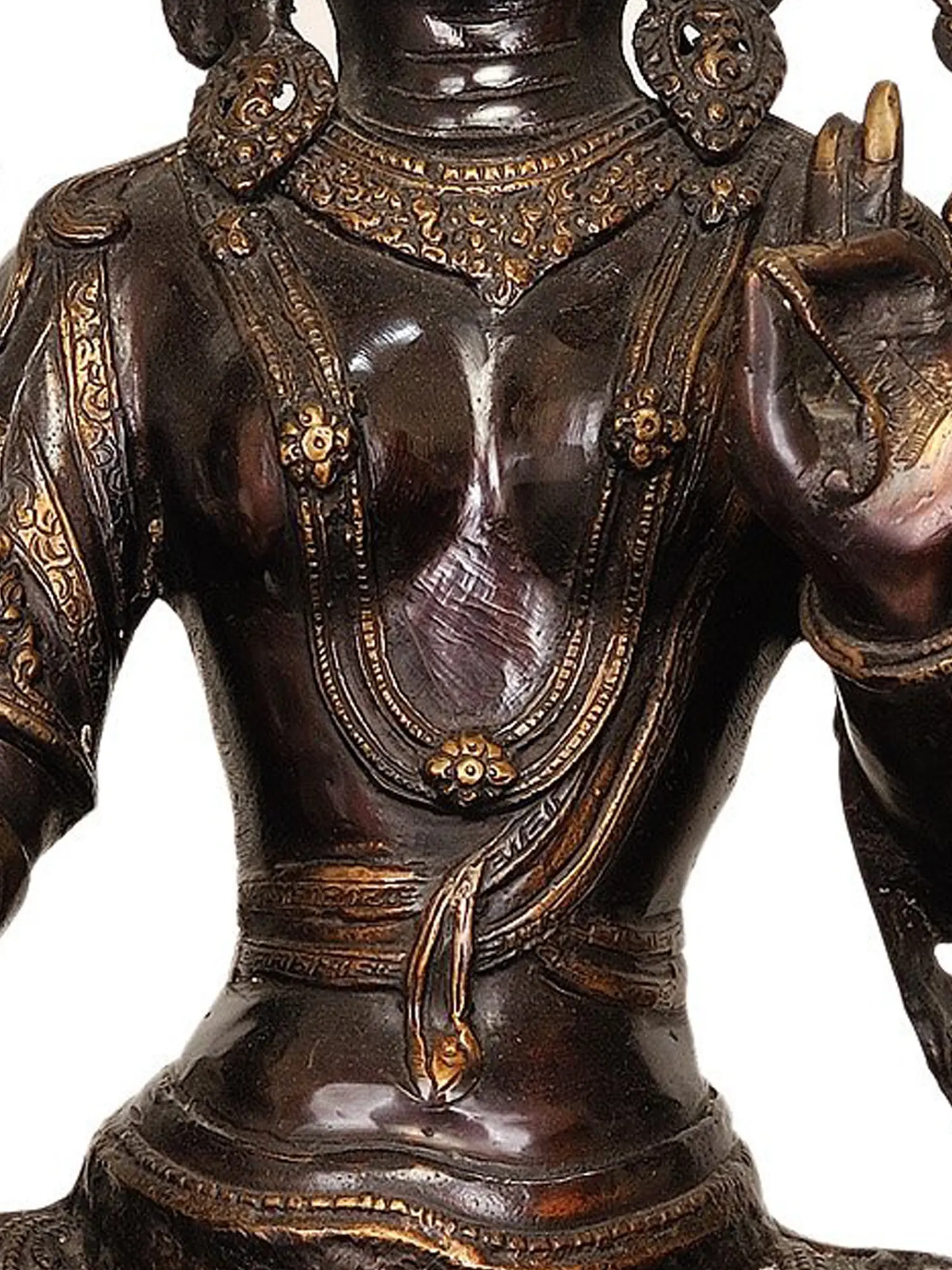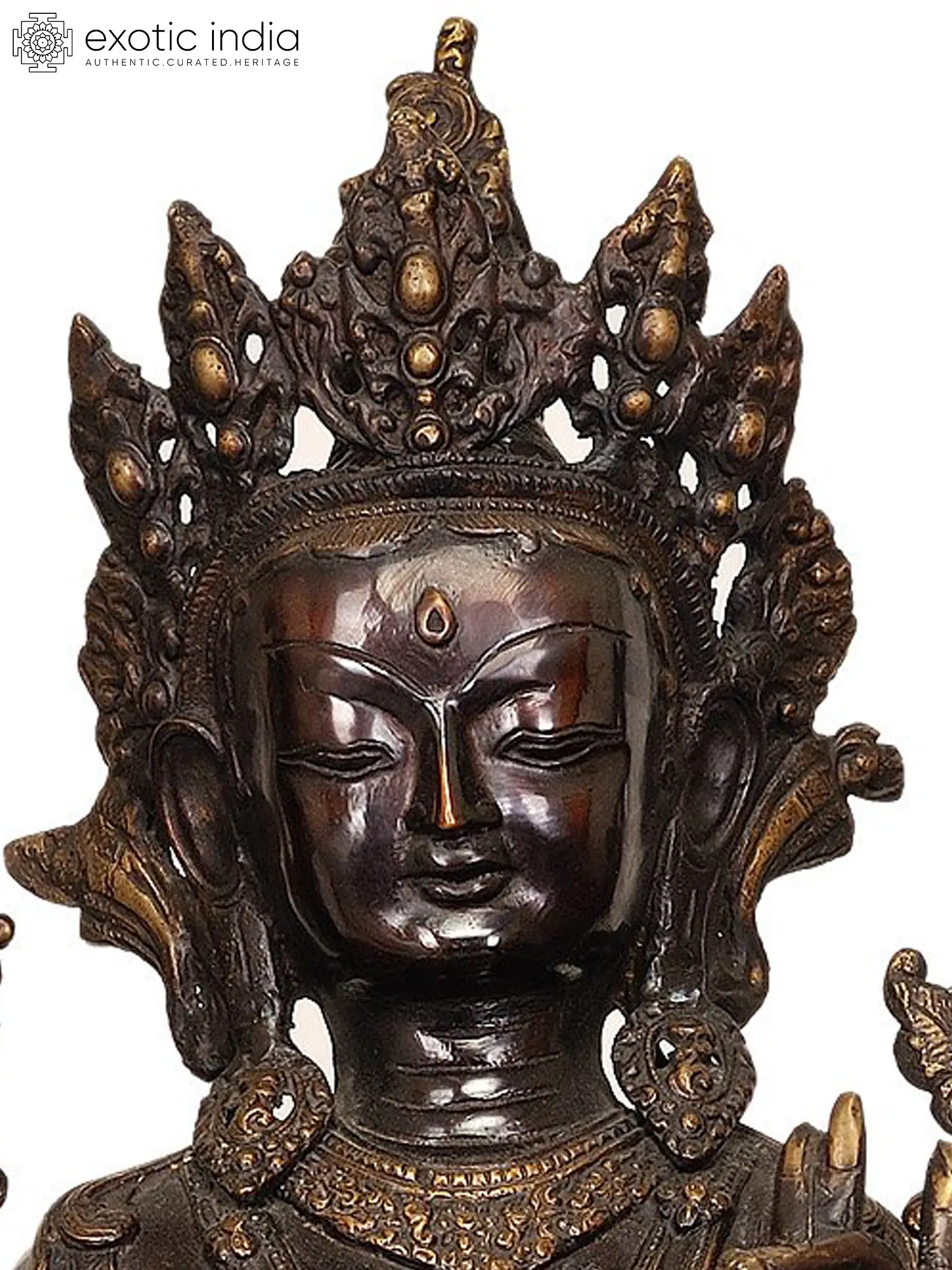 Each detail of this exquisite statue is a result of the time-honored traditions of Indian metal casting. Hand-sculpted and meticulously finished, it embodies the dedication and spiritual devotion of the artisans who created it. The rich patina of the brass lends an aura of antiquity and profound reverence, making this piece a truly captivating focal point for any spiritual space or meditation room. Its substantial size ensures a commanding presence, inviting a deeper connection with the profound wisdom and boundless compassion embodied by Green Tara. This work of art is not merely an object of beauty but a conduit to spiritual practice, a reminder of the transformative power of mindfulness and the ever-present support of the divine.