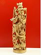 Ancient Hindu iconographical theories pride in skilfully conveying veiled ideas through perceptible art. Inspiring awe and devotion in the heart of the seeker, this neatly carved wooden murti of Sri Krishna, is the lessons of the Puranas, Gita, and all their rhythms fused together in one image. Such is the magic of the craftsmanship in this cedar wood statue that one can easily forget it is just an idol and soak in the divine presence of Krishna.