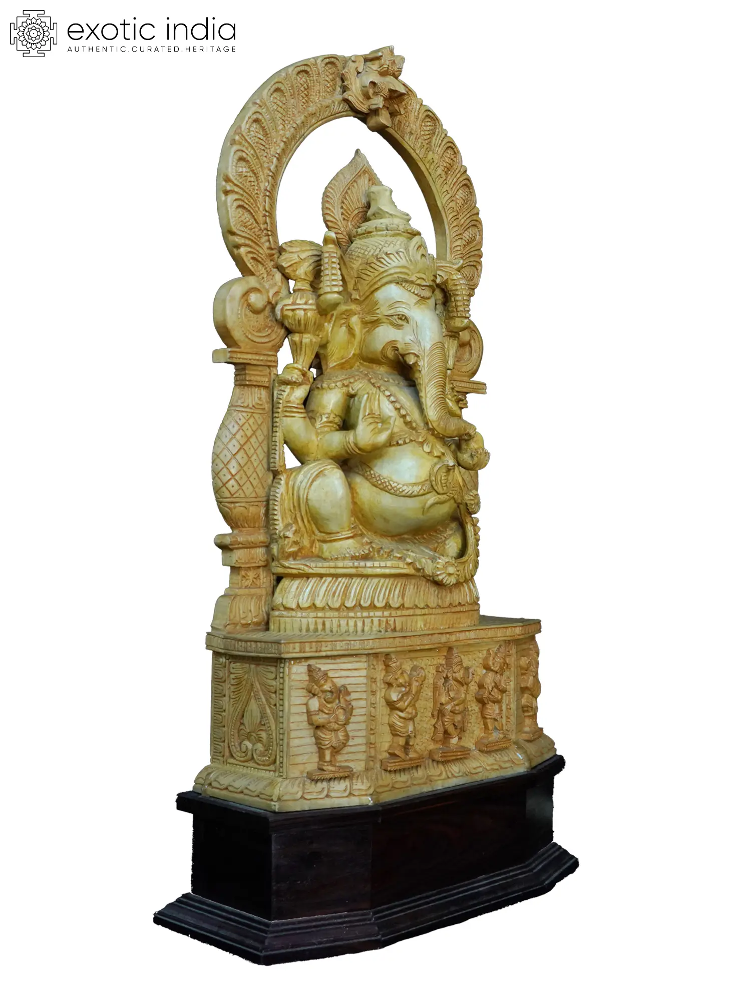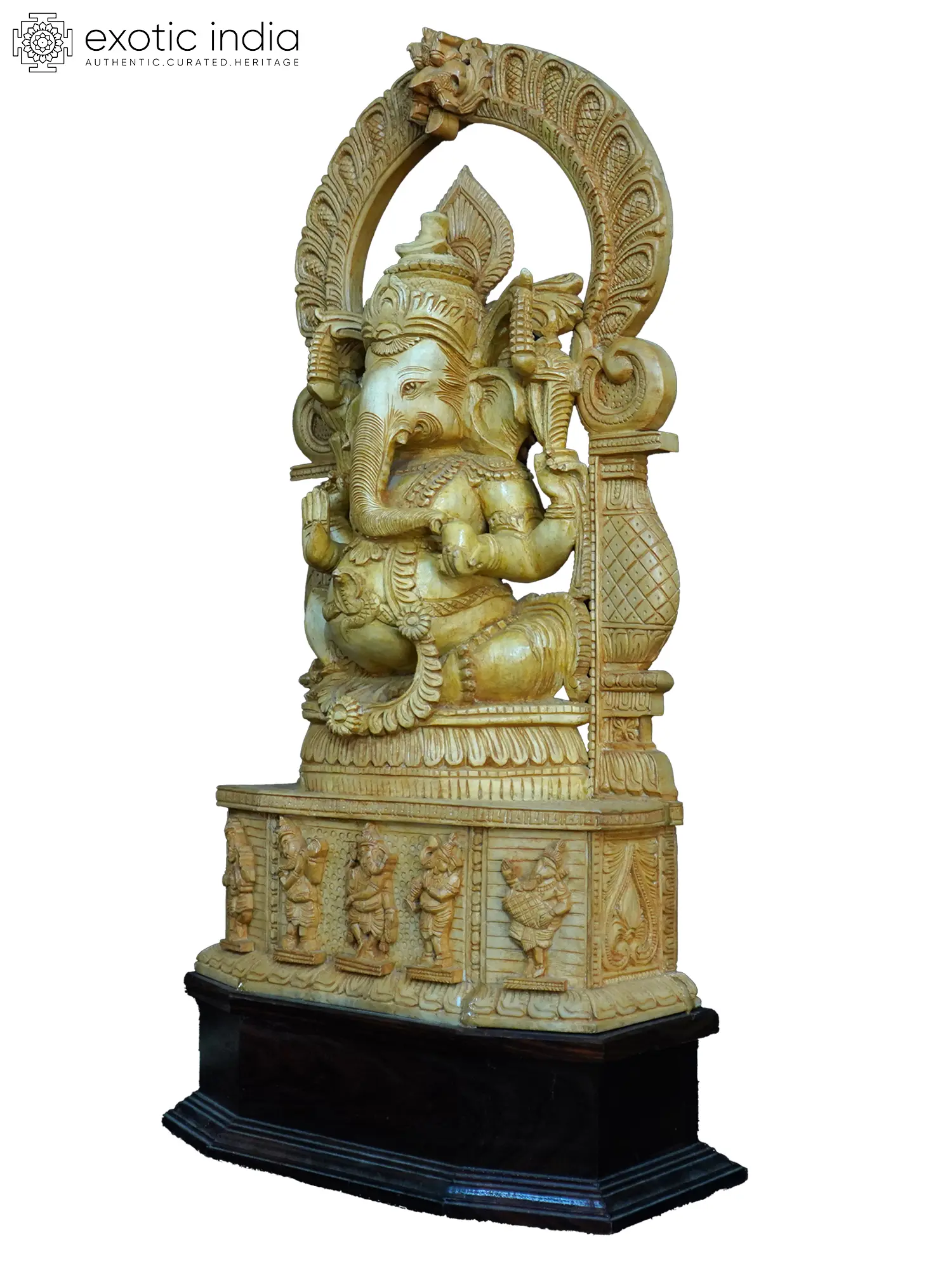 Large Size Lord Ganesha Wooden Statue Seated atop His Vahana