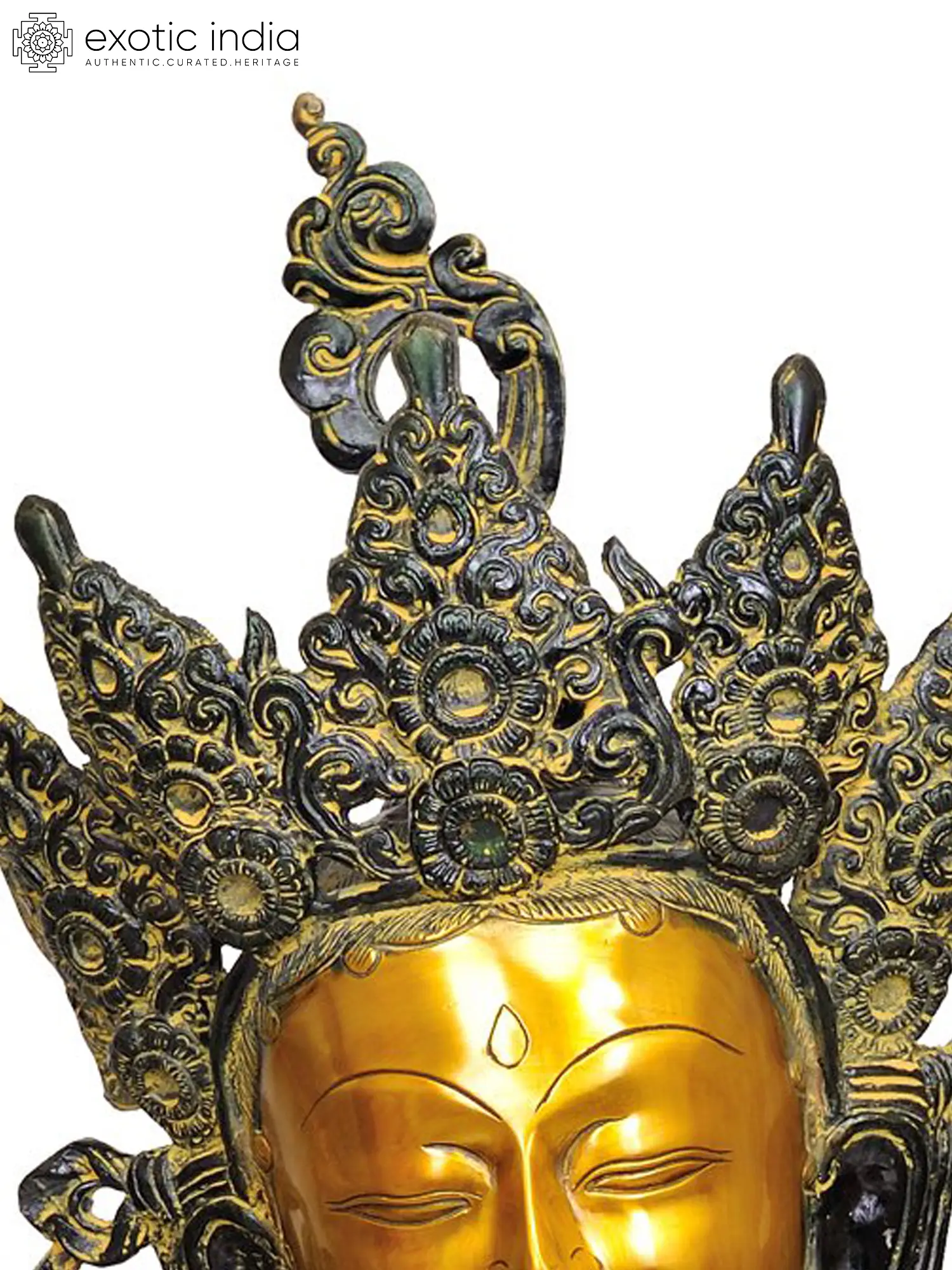 27" Large Size Green Tara (Tibetan Buddhist Deity) In Brass | Handmade | Made In India