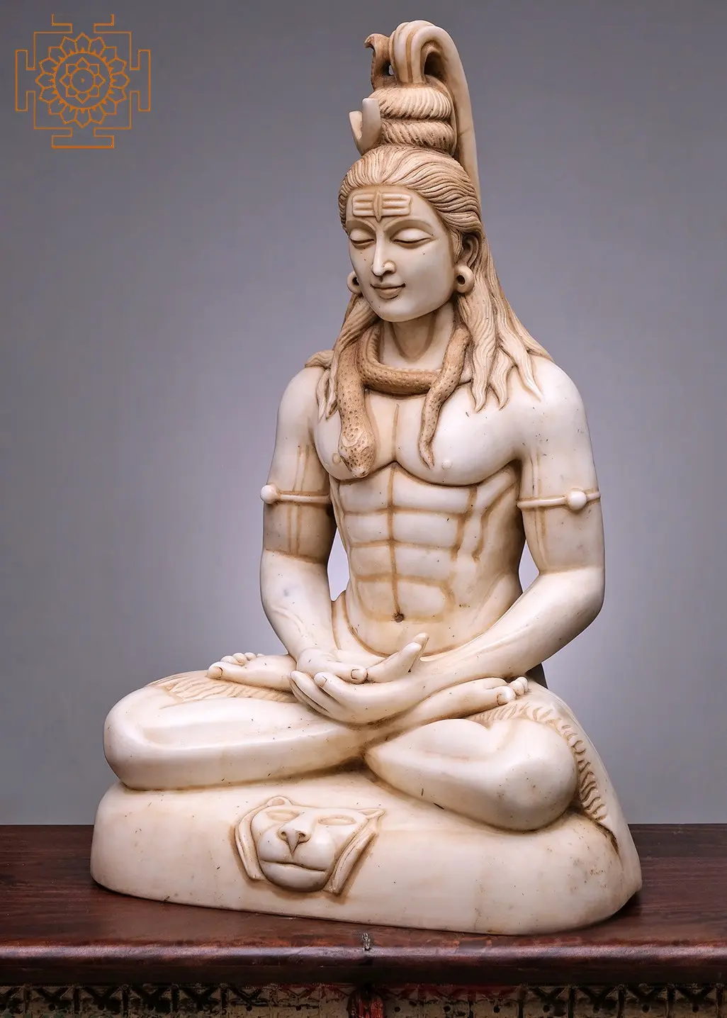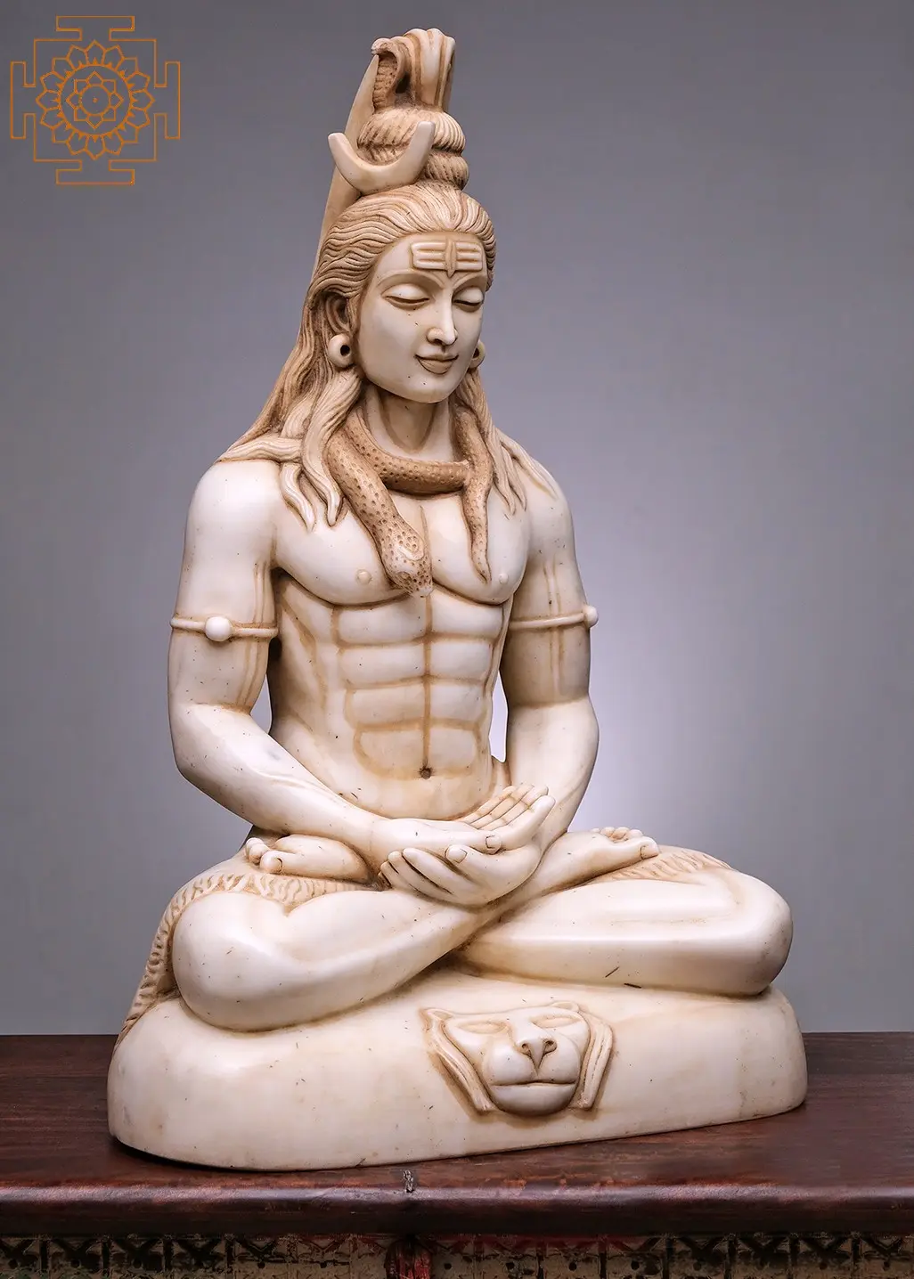 Embrace the profound tranquility and spiritual power of Lord Shiva with this exquisite handmade statue. Carved from luminous white marble, this 27-inch masterpiece captures the essence of Mahadeva in a deep meditative state. The intricate detailing showcases the divine form of the Adi Yogi, the primal yogi, exuding an aura of peace and introspection. From the serene closed eyes to the gently folded hands in a meditative mudra, every element invites contemplation and inner stillness.