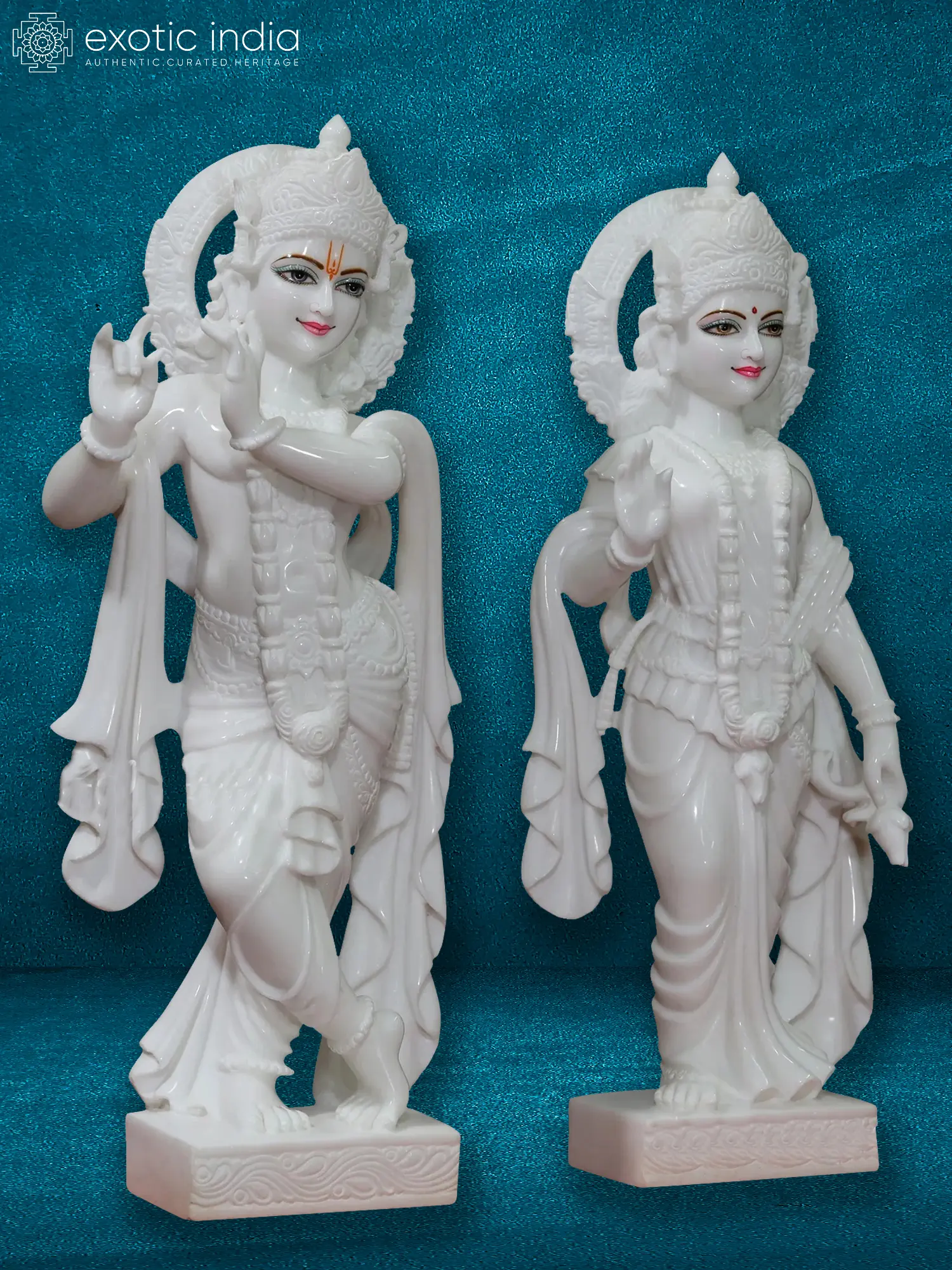 14" The Harmony Of Radha And Krishna | Super White Makrana Marble Statue
