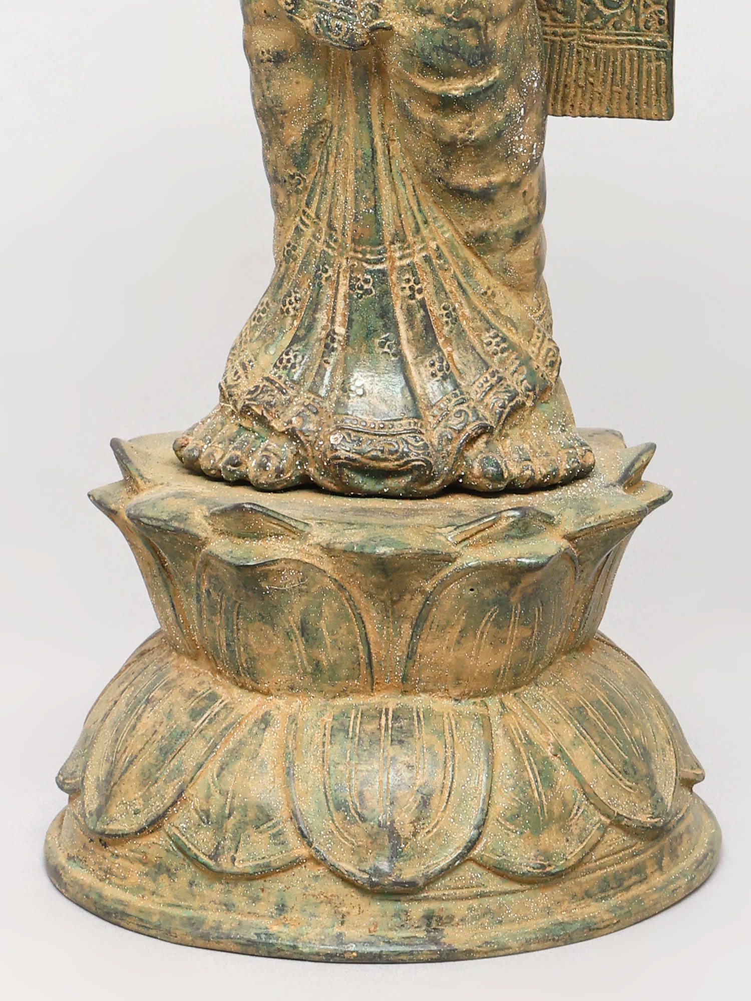 Each detail of this magnificent piece is brought to life through the ancient lost wax casting method, a technique revered for its ability to capture the most intricate nuances. Crafted from premium brass, the resulting sculpture boasts a substantial feel and a patina that speaks of timeless elegance. You'll appreciate the seamless flow from the serene expression to the flowing robes, a testament to the artisan's dedication.