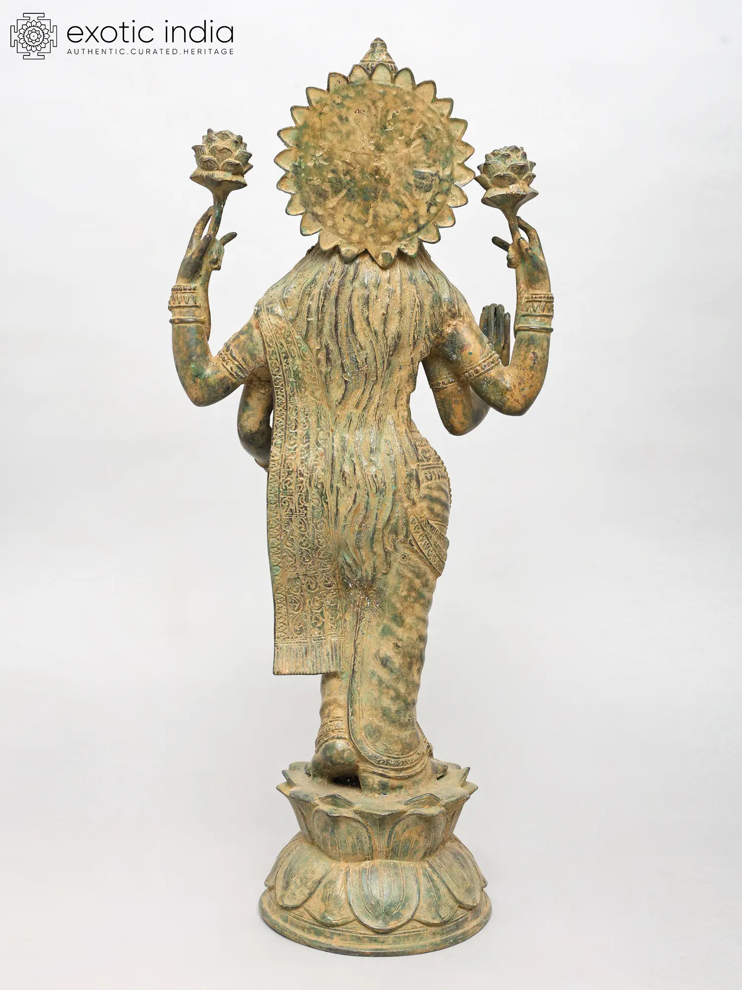 24" Haloed Standing Lakshmi Brass Sculpture – Handmade Hindu Goddess Statue | Made in India