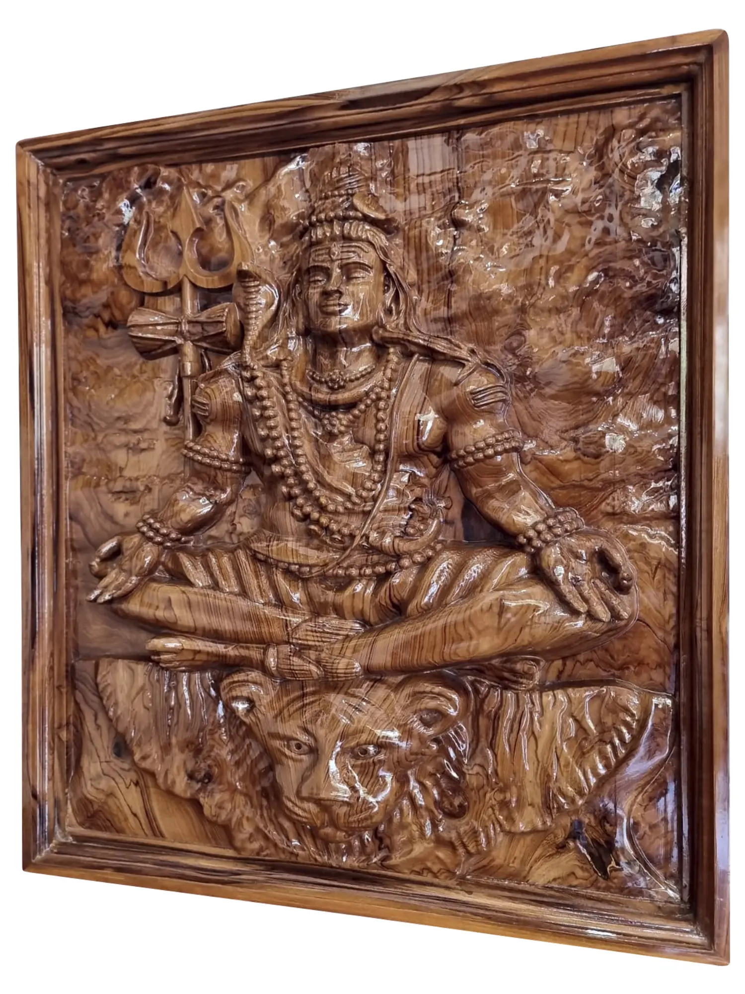 Lord Shiva as the Adi Yogi is the eternal form that displays the Yogic affinities of the Lord. Various texts mention the story of Shiva, who taught his wife Goddess Parvati how to meditate and do yoga. As a result, he became known as the Adi Guru of Yoga. This Wood Meditative Shiva Wall Hanging Panel is made out of Teak Wood. It displays the age-old technique of wood craving that has been utilized for decorating the inner walls of temples.