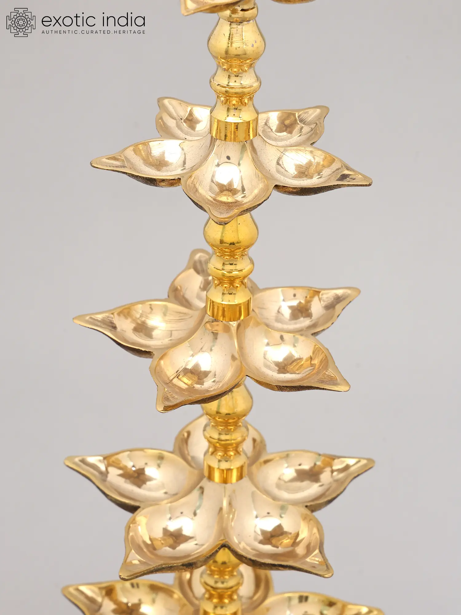 The design features twenty individual wicks, arranged in a cascading floral pattern, reminiscent of blooming lotuses. Each petal-shaped receptacle is designed to hold a small wick, and when lit, they collectively create a breathtaking display of light. This multi-wick design is deeply rooted in devotional practices. In many Indian households and temples, lamps are lit during pujas (worship ceremonies) and festivals to dispel darkness, both literal and metaphorical, and to invite divine energy and positive vibrations. The twenty wicks can be seen as a symbolic representation of the twenty-four hours of the day, ensuring a continuous flow of auspicious energy, or perhaps the twenty spiritual qualities one strives to cultivate. The act of lighting these lamps is an offering, a gesture of devotion that seeks to illuminate the path towards spiritual understanding and well-being.
