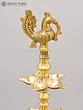 Handmade in India, this lamp carries the legacy of generations of skilled artisans who have perfected the art of brass casting and detailing. The smooth, polished surface of the brass reflects light beautifully, enhancing the lamp's visual appeal. The meticulous craftsmanship is evident in every curve and contour, from the delicate rendering of the peacock's plumage to the elegant curvature of the lamp's tiered structure. Brass, a metal prized for its durability and aesthetic qualities, has been used for centuries in India for creating sacred objects and decorative pieces. Its warm, golden hue is considered auspicious, further enhancing the spiritual efficacy of this lamp. Owning such a piece is not just acquiring an object of beauty, but also embracing a piece of living heritage, a tangible connection to India's artistic and cultural soul. This lamp is ideally suited for placement in prayer rooms, meditation spaces, or as a statement piece in any area where a touch of divine elegance and radiant warmth is desired.
