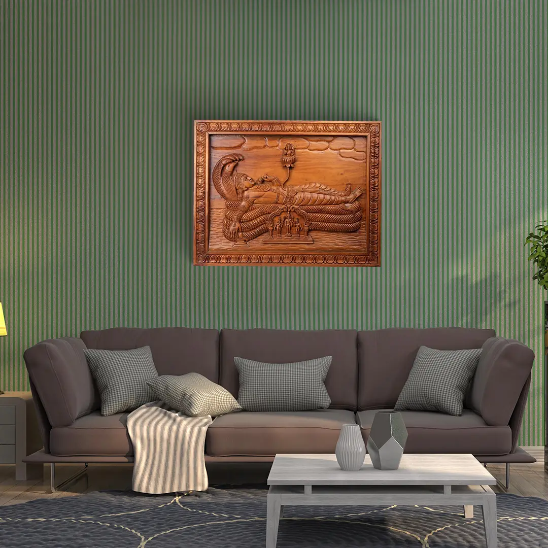 28" Wooden Shree Padmanabha Swami Wall Panel