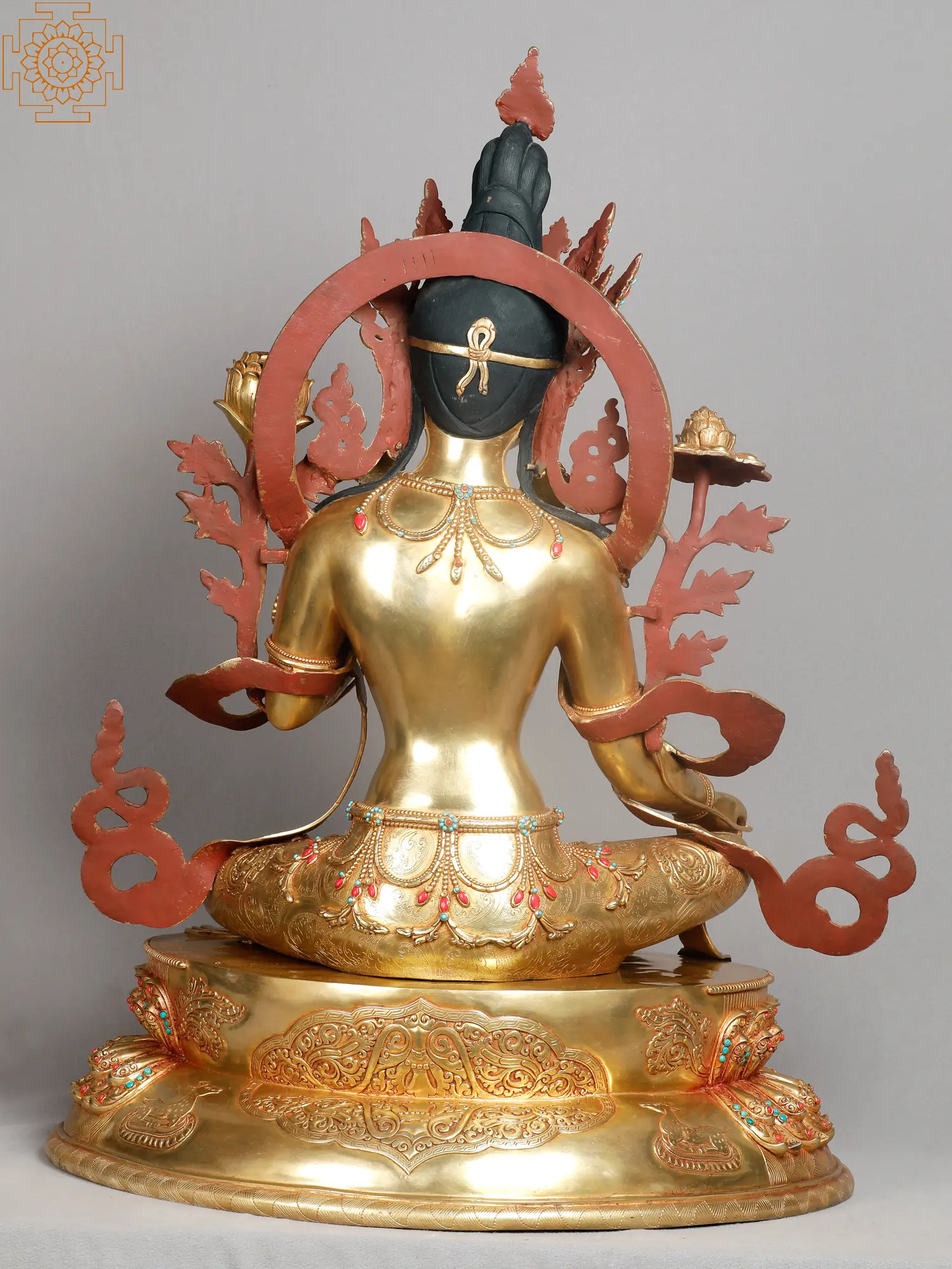 29" Goddess Green Tara Copper Idol | Tibetan Buddhist Deity Statue