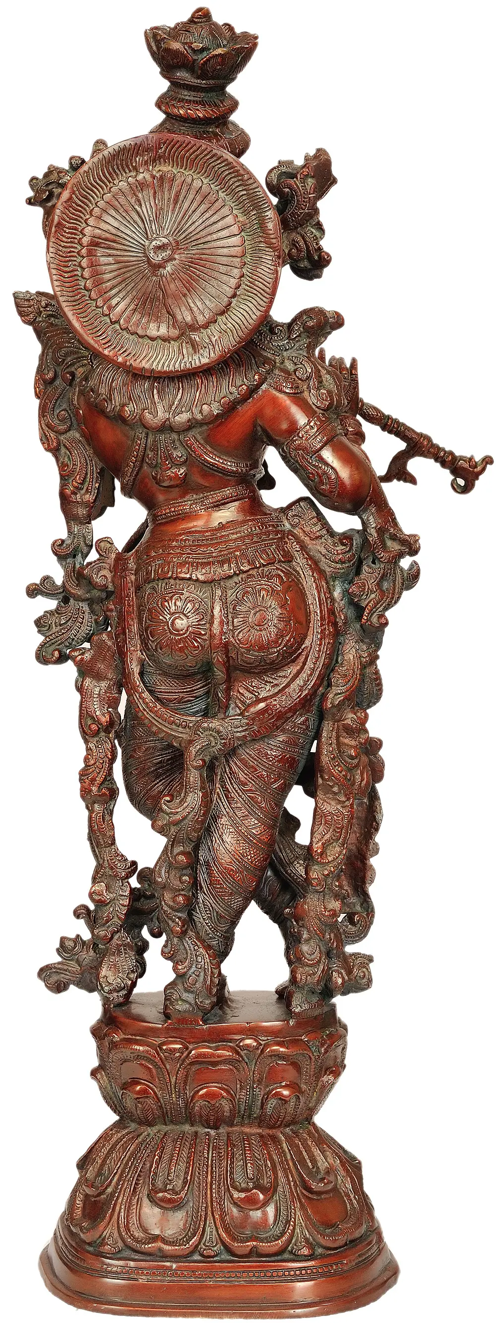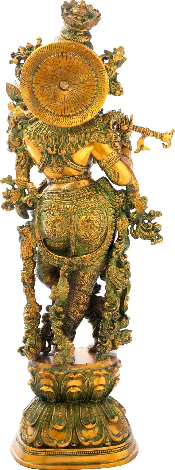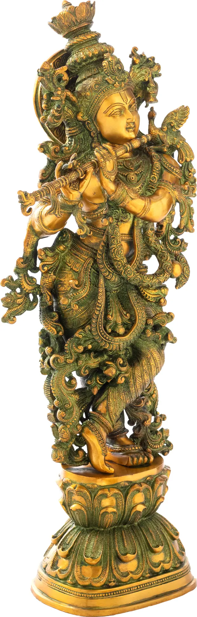 29" Krishna, The Resplendence Of The Divine Flutist In Brass | Handmade | Made In India