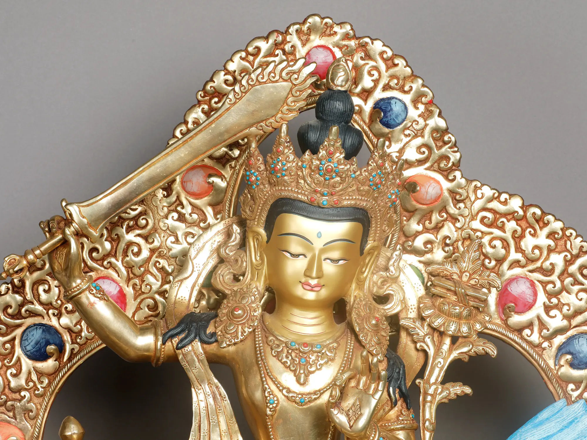 8" Tibetan Buddhist Deity Manjushri Brass Sculpture | Handmade | Made in India