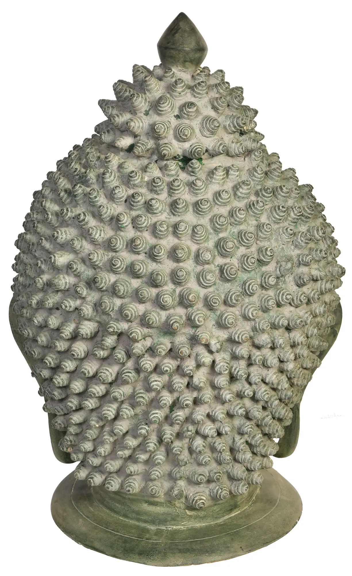 The intricate craftsmanship of this brass piece, especially along the back of the head, is enough to stun any connoisseur of Indian sculpture.
