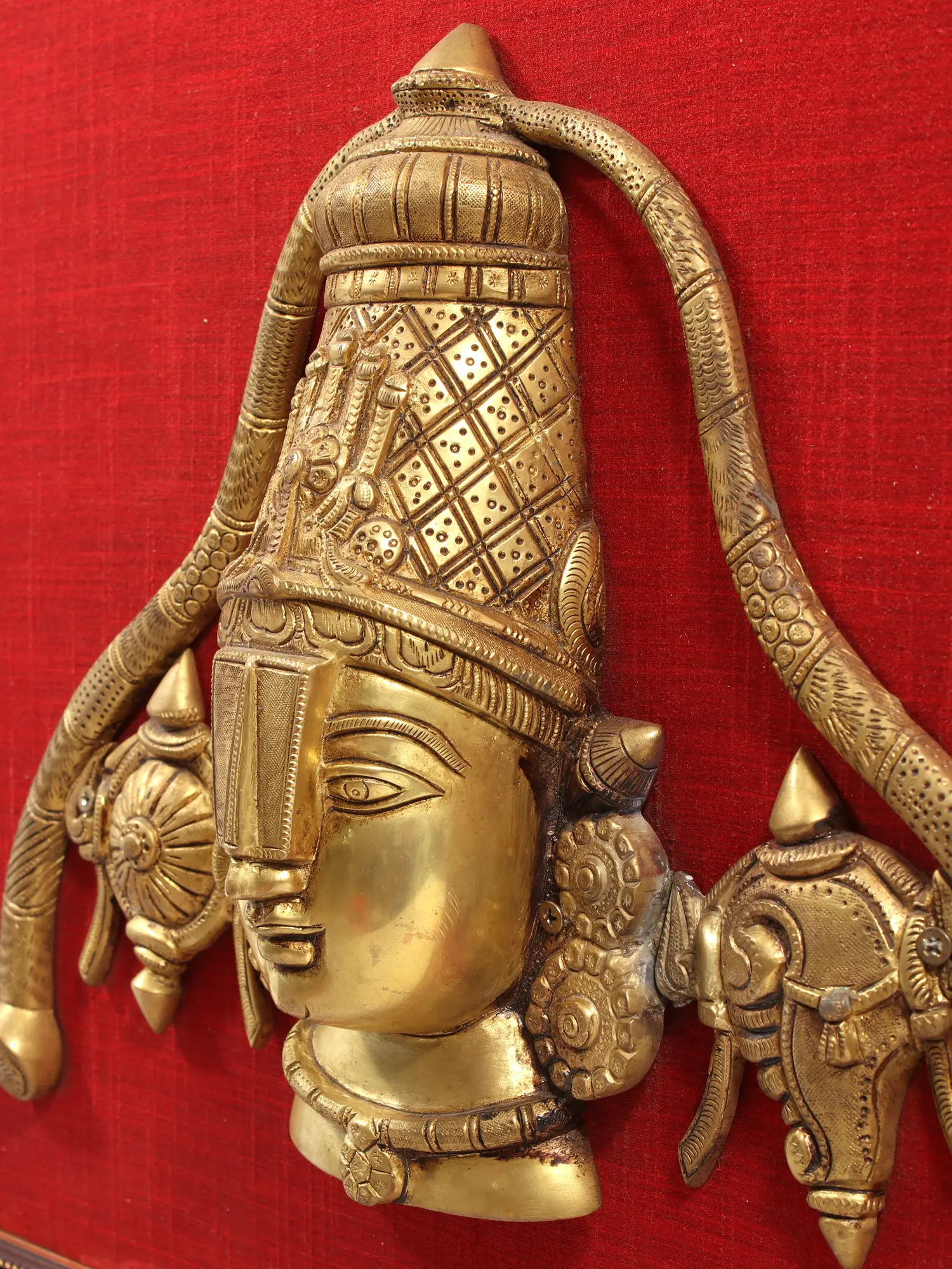 The idea of sculpting is changing with the times. The most recent trend is a mix of idolism and fashionable elements. This sculpture, which has a bust of Lord Balaji encased in a majestic wood frame against a vibrant red background of Chanderi fabric, exemplifies creativity at its finest. Lord Balaji is depicted here with his iconic Panchajanya Shankha and Sudarshana Chakra, completing and glorifying the image to boost the atmosphere of the location where it will be displayed.