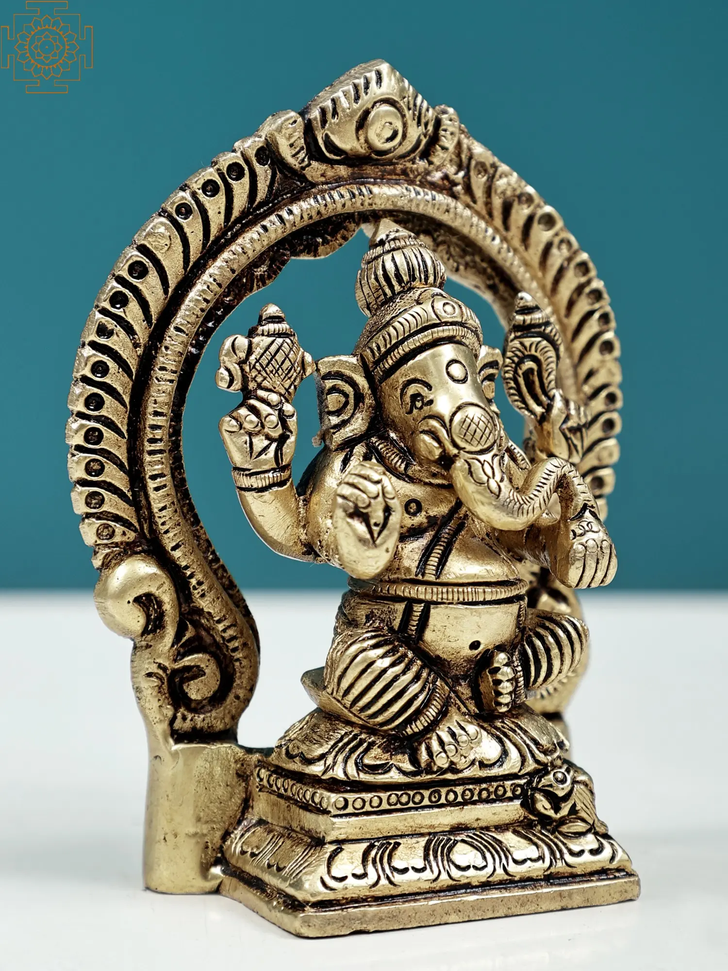 Invoking the presence of Lord Ganesha, the beloved elephant-headed deity, this exquisite brass sculpture embodies his benevolent spirit and powerful grace. Handcrafted with meticulous attention to detail, this piece is more than just a decorative item; it is a conduit for blessings and a symbol of auspicious beginnings. The radiant brass captures the divine essence of Ganesha, making him a captivating focal point for any space. Whether adorning a personal altar, a study desk, or a bookshelf, this sculpture serves as a constant reminder of wisdom, prosperity, and the ability to overcome challenges. ––––––––––