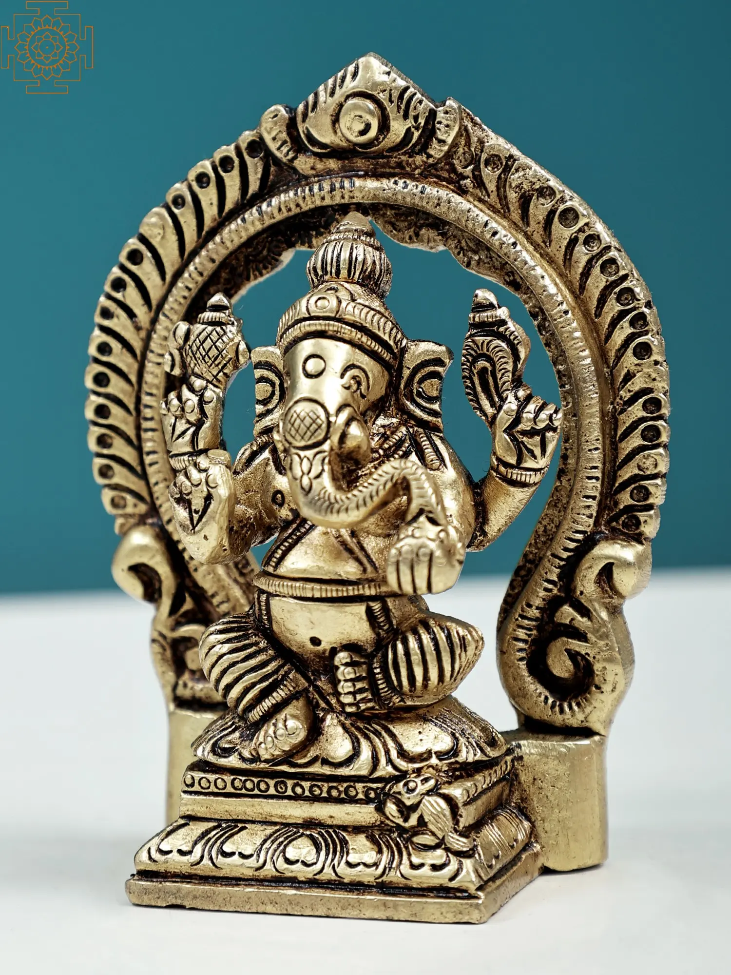 3.5" Chaturbhuja Lord Ganesha Brass Sculpture | Handmade