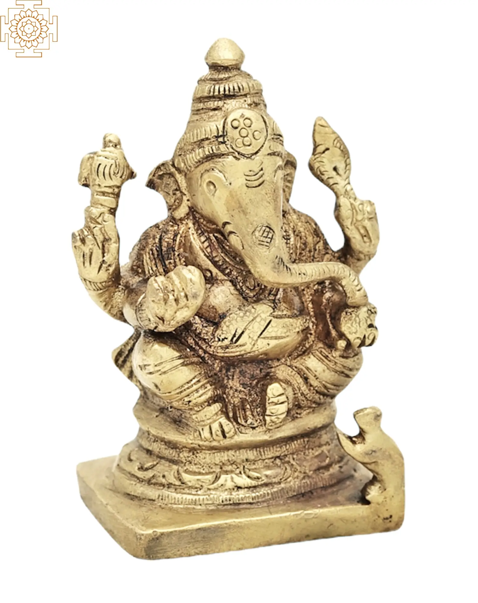 Bhagawan Ganesha, “the harbinger of Success”, sits gracefully upon a pedestal, embodying divine wisdom and benevolence. With his broken tusk symbolising sacrifice, he radiates strength through his serene demeanour. In one hand, he holds a goad, symbolising guidance, while his other hand gently grasps a noose, representing his ability to bind desires and attachments. As the remover of obstacles, Ganesha’s presence brings solace and courage, inspiring devotees to transcend challenges. Crafted with authentic brass, this mesmerising sculpture invites you into a realm of auspicious beginnings and wisdom.