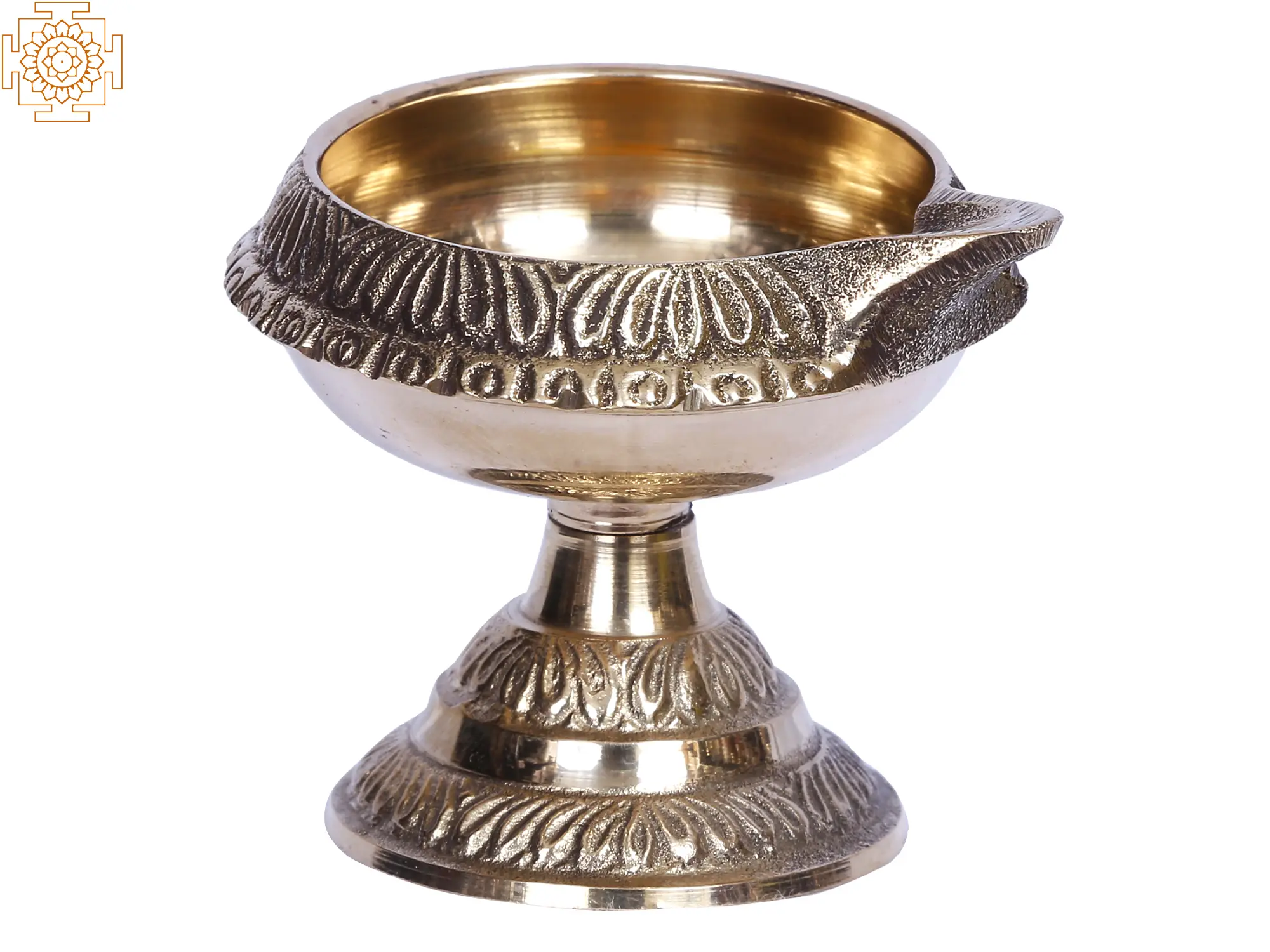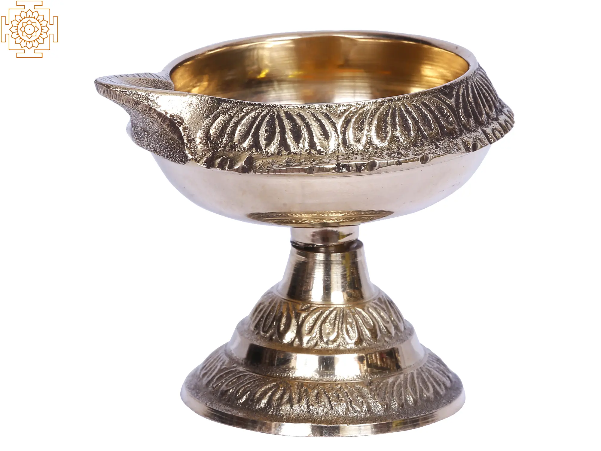 This brass lamp, also known as a Kubera Diya, ensures a steady flow of worldly and spiritual abundance in one's life. Kuber, the deity of wealth and success, is pleased by the lighting of this brass Diya named for him. The Diya is a simple gadget endowed with brass's purity. It comes with a bowl-shaped oil basin and a single wick. A robust grip with lovely carvings allows the devotee to effortlessly grab the light and perform Aarti. This lamp is one of the most popular for giving deities the warmth of the lamp.