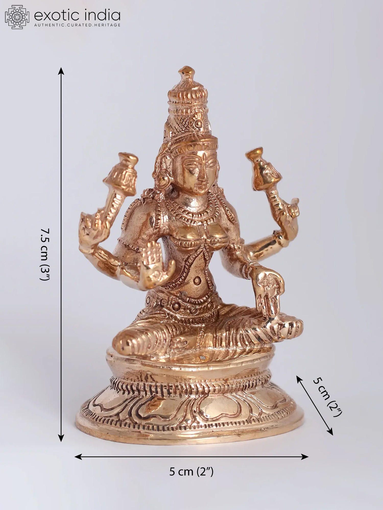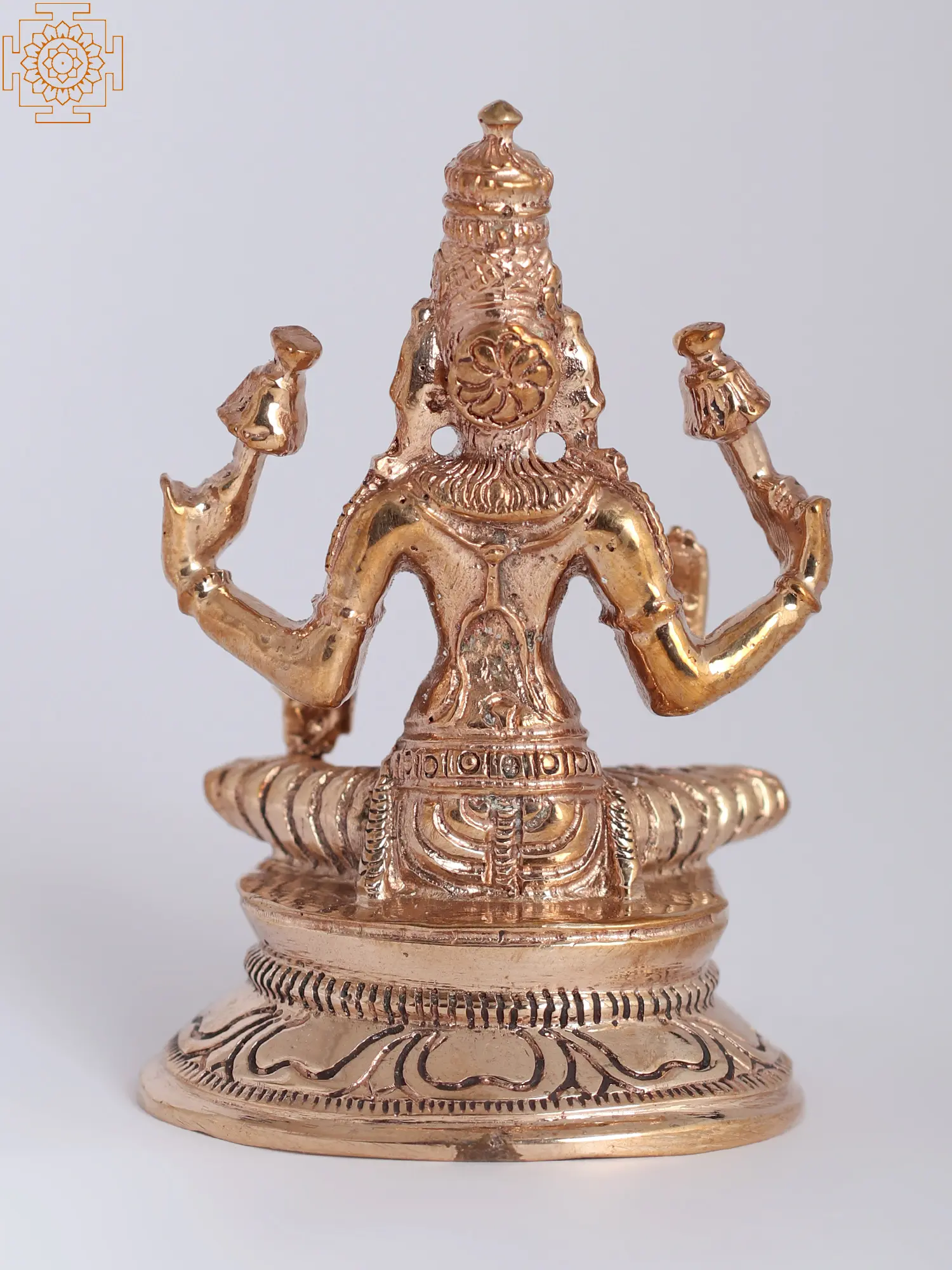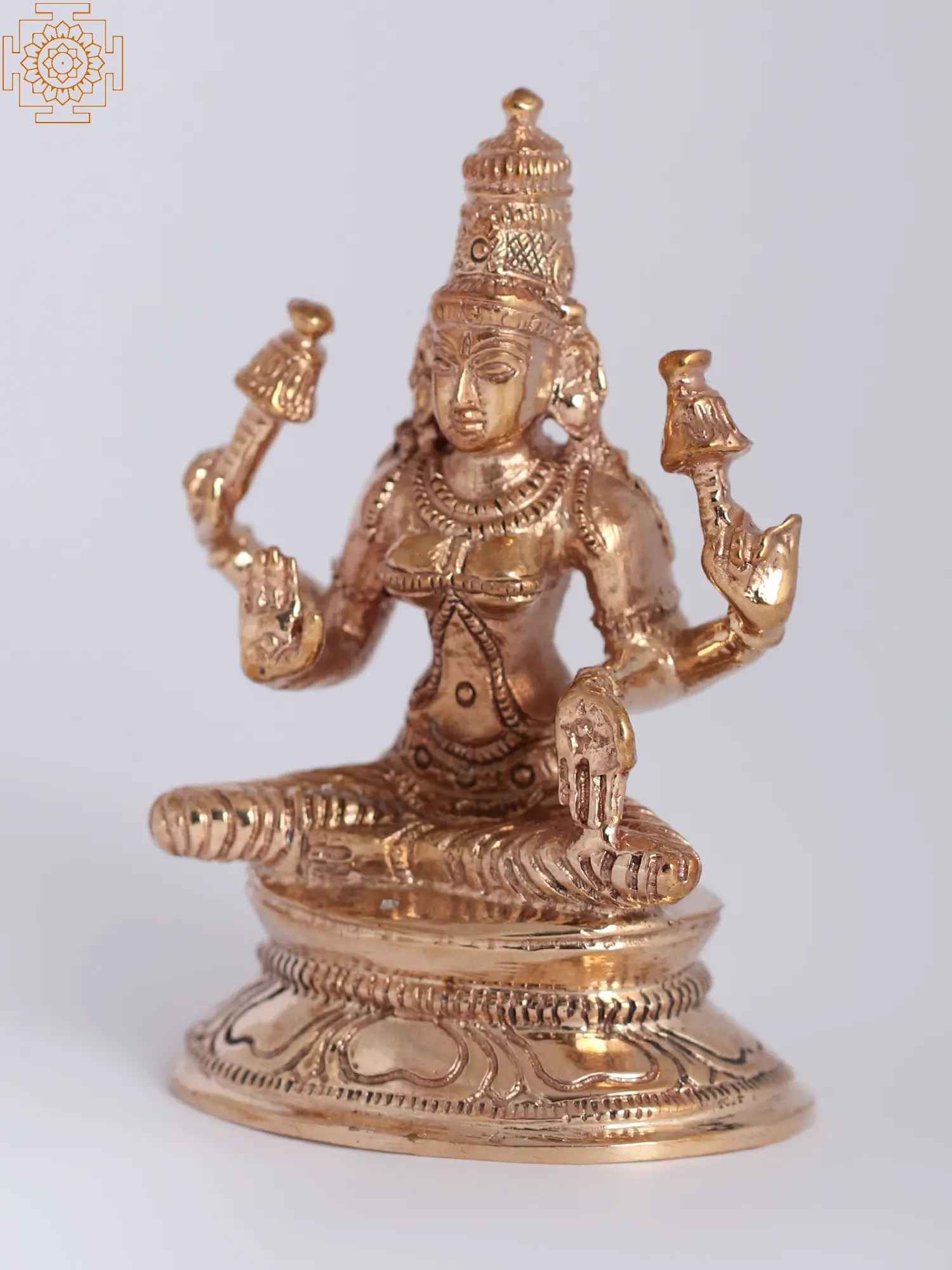 The Bronze Goddess Lakshmi, gracefully seated on a divine pedestal, embodies divine benevolence. Her chaturbhuja roopa, with four arms, radiates supreme auspiciousness. Adorned in exquisite attire, she carries delicate lotuses, symbolizing purity and beauty. The gestures of granting boons and dispelling fear emanate a sense of divine assurance. The craftsmanship of the bronze sculpture captures every intricate detail, showcasing the artisan's devotion and skill. As a symbol of prosperity and grace, this icon not only celebrates the divine feminine but also invites a sense of serenity and blessings into the space it graces.