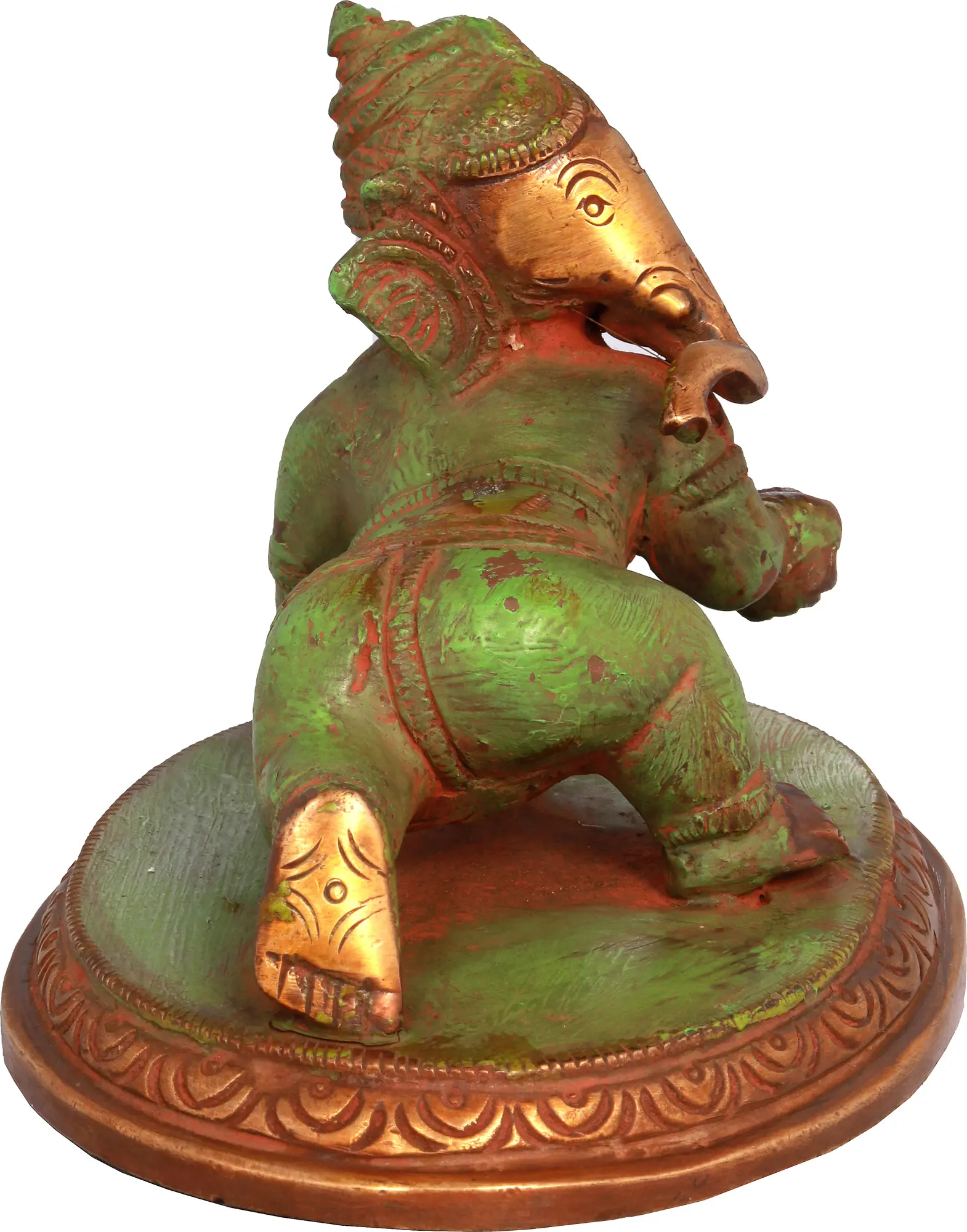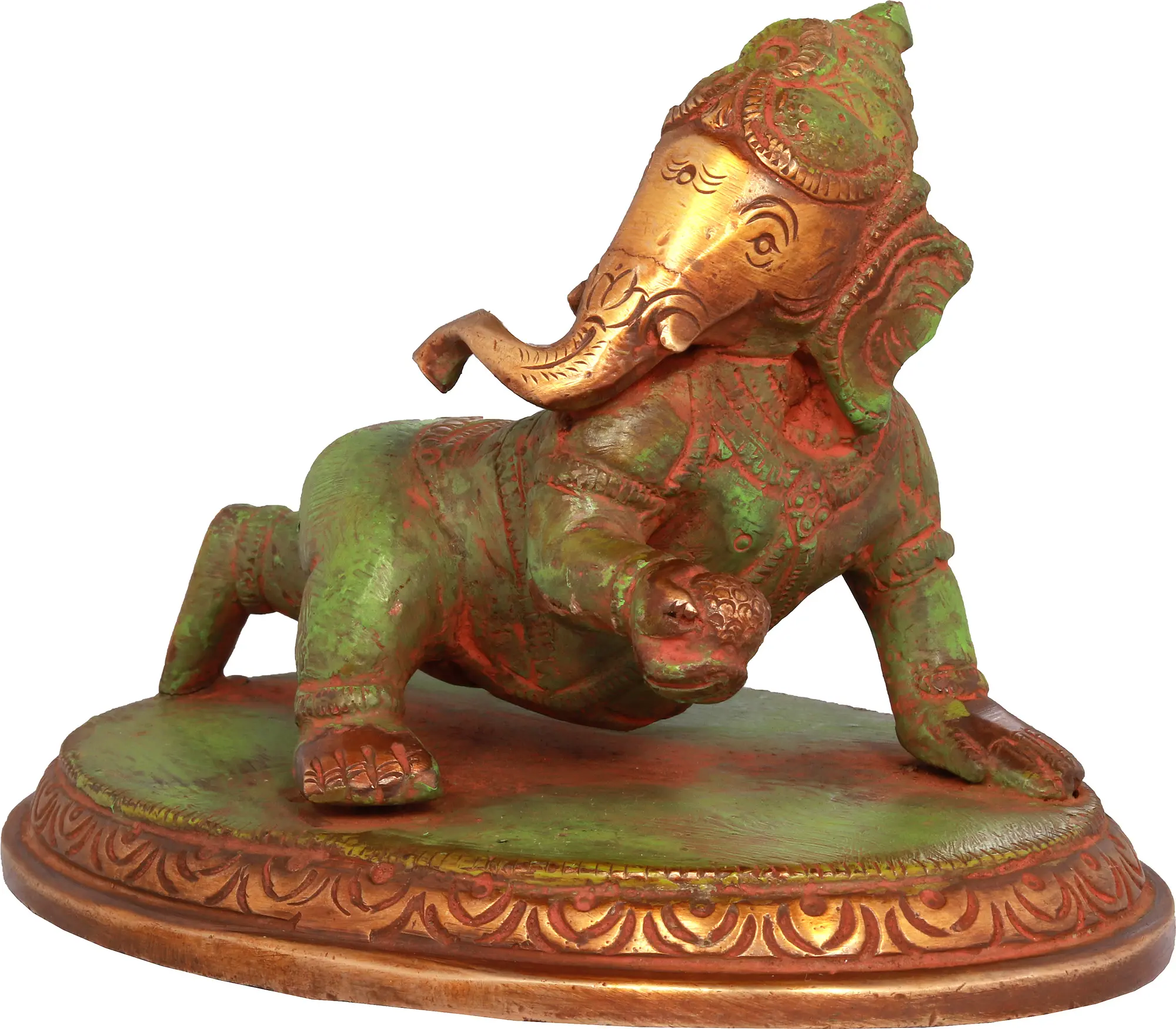 “Every child begins the world anew, bringing hope and laughter." This essence is encapsulated in the meticulously constructed crawling Baby Ganesha brass sculpture. Handmade with care, it depicts Lord Ganesha in his playful infancy. Symbolizing purity and innocence, he crawls forward with a mischievous smile. The modaka, his favorite sweet, rests in his tiny hand, signifying the sweetness of spiritual attainment. This sculpture captures the joy of divine innocence, reminding us to approach life with a childlike heart, full of wonder and enthusiasm.