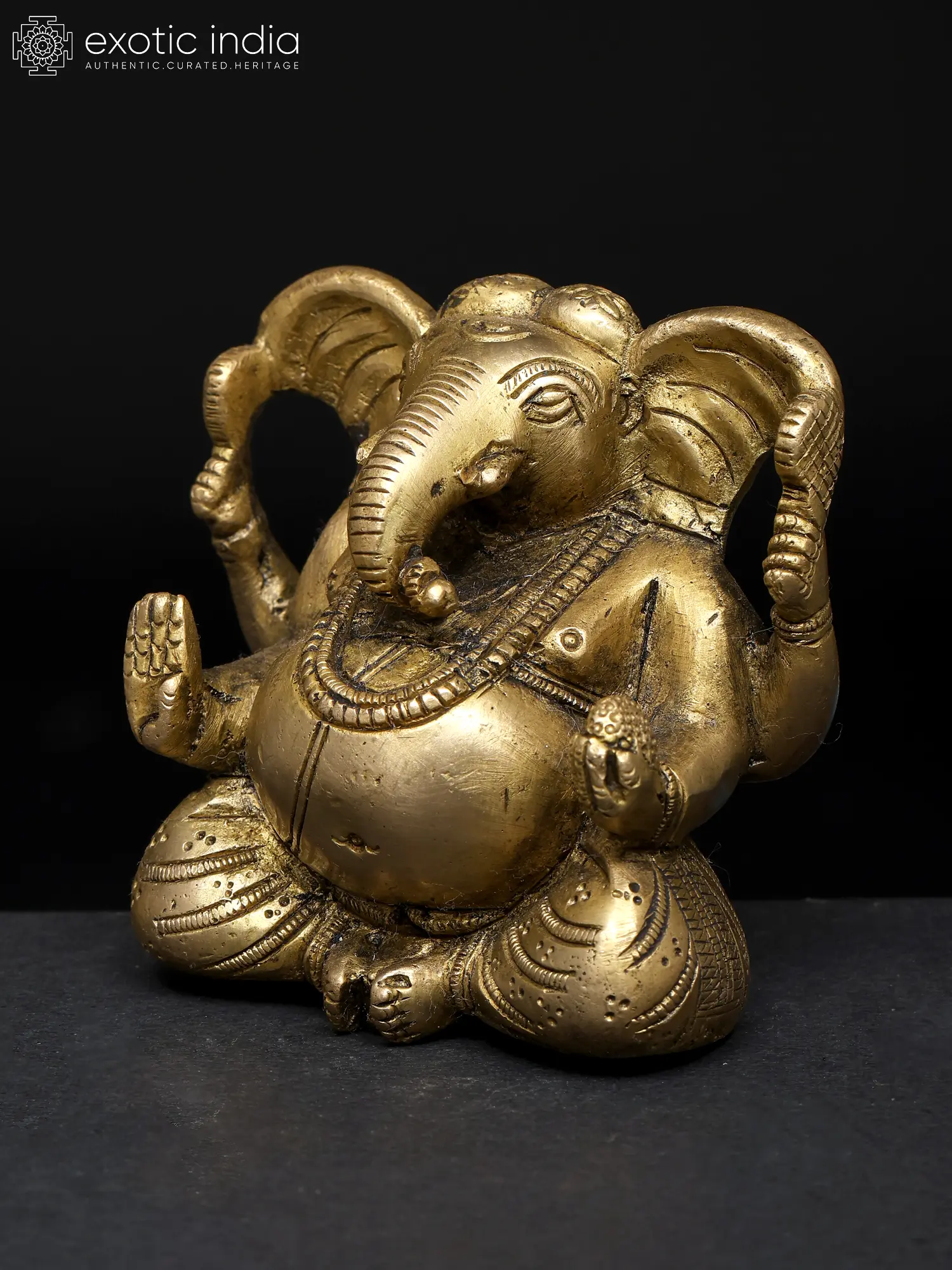 In the gleam of polished brass, Lord Ganesha, the Deva of intellect and Wisdom, sits in divine splendor, a mesmerizing embodiment of grace. His form exudes an aura of tranquillity as He rests in the “Utkutakasana posture”. His right hand, in the “Ashirwad Mudra”, radiates benediction and benevolence, while his left hand cradles a “Modak”, the sweet offering of wisdom and prosperity. Adorned with the sacred thread, “Yajnopavita”, He symbolises spiritual wisdom. His ample ears listen to the world’s joys and sorrows, and his large belly, a reservoir of cosmic abundance. Keeping this artwork in your home brings blessings of intellect, prosperity, and auspicious beginnings, as Ganesha removes obstacles and bestows his divine grace upon all who worship him.