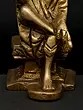 This handcrafted brass sculpture portrays Sai Baba, the revered Indian spiritual master, seated serenely on an asana (seat), his right hand raised in the Abhaya Mudra, a gesture of blessing and reassurance. With intricate detailing, the artisan has captured the gentle, compassionate essence that defined Sai Baba’s life and teachings. The warm, golden hue of the brass enhances the feeling of peace and spiritual presence.
