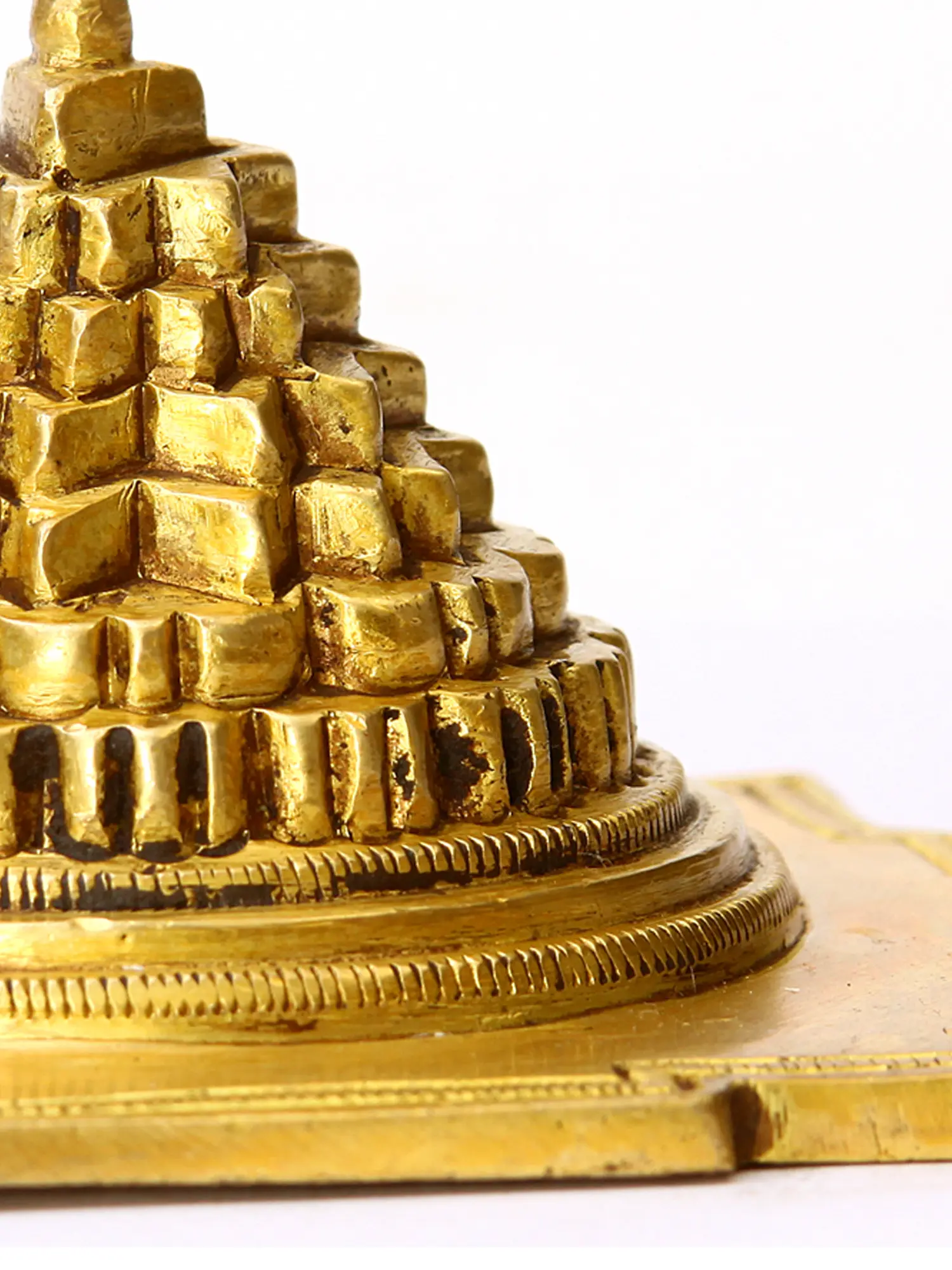 The sacred depiction of the Shri Yantra in brass is a potent symbol of divine energy and cosmic harmony. Handmade in India, this intricately crafted sculpture embodies the essence of cosmic power and spiritual significance. The geometric intricacies within the Yantra symbolise the interplay between the spiritual and material worlds, inviting contemplation on the nature of reality and the cosmic order. The detailed craftsmanship of the Shri Yantra invites viewers to explore the depths of sacred geometry and spiritual alignment, fostering an ambiance of cosmic balance and divine energy.