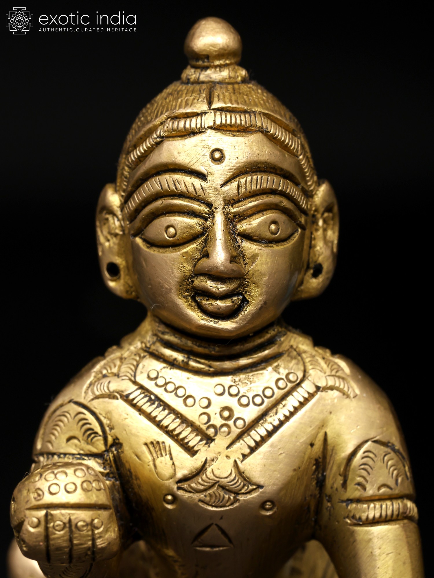 Small Superfine Bal Gopal (Krishna) with Cow | Brass Statue | Multiple Sizes