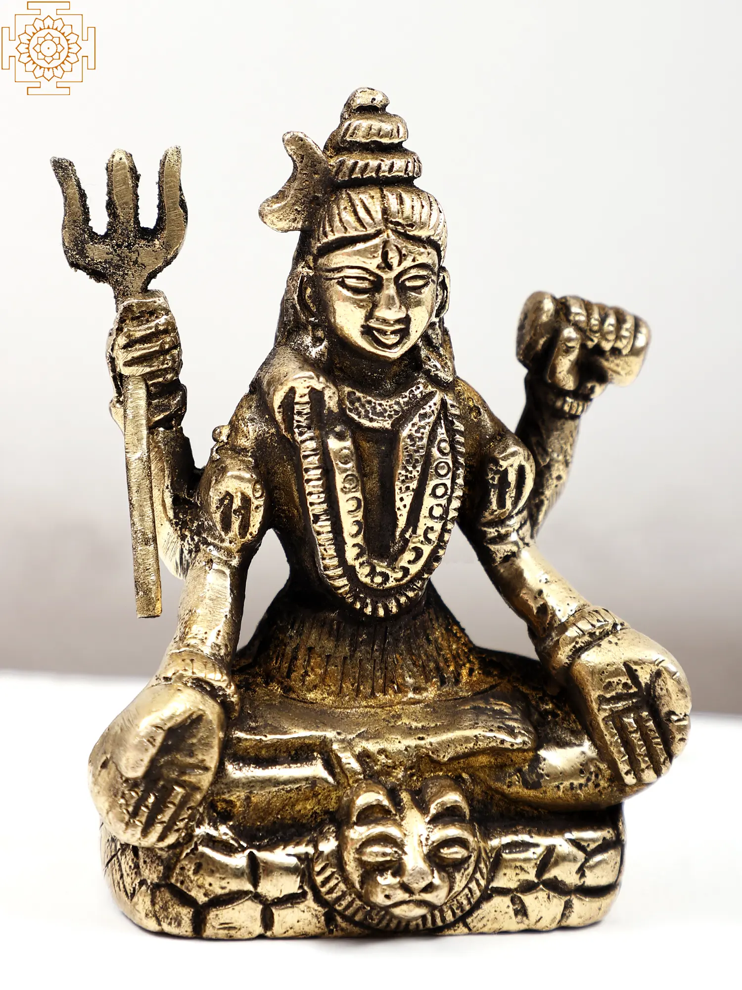 3" Small Lord Shiva Seated on Nandi | Brass Statue
