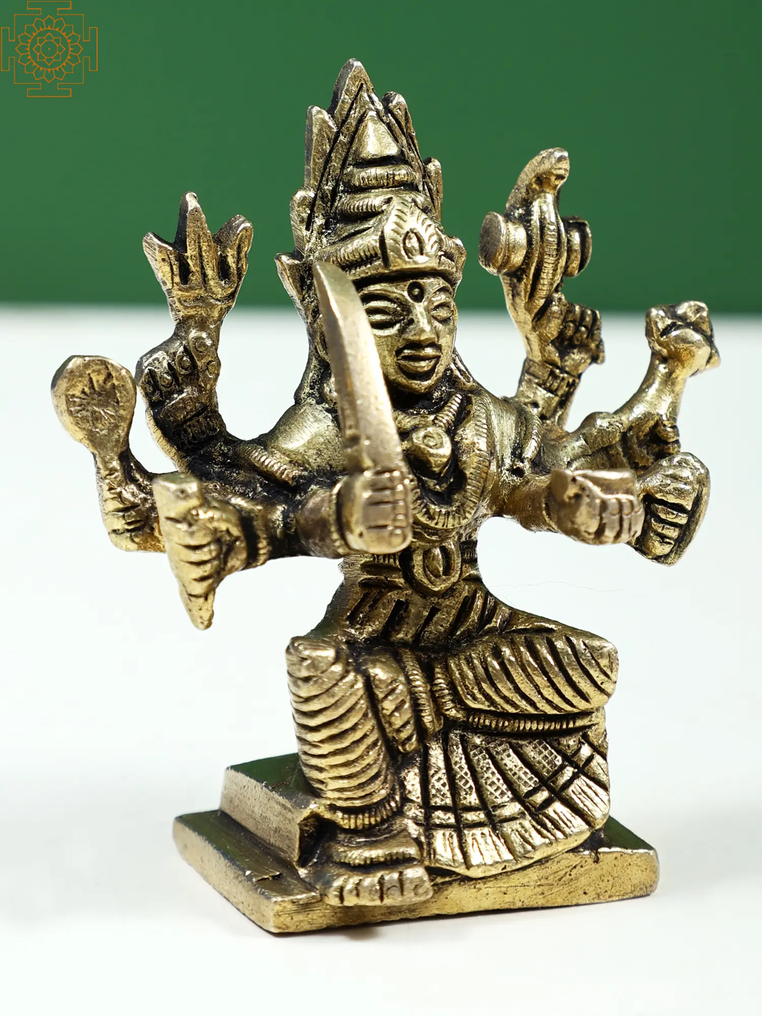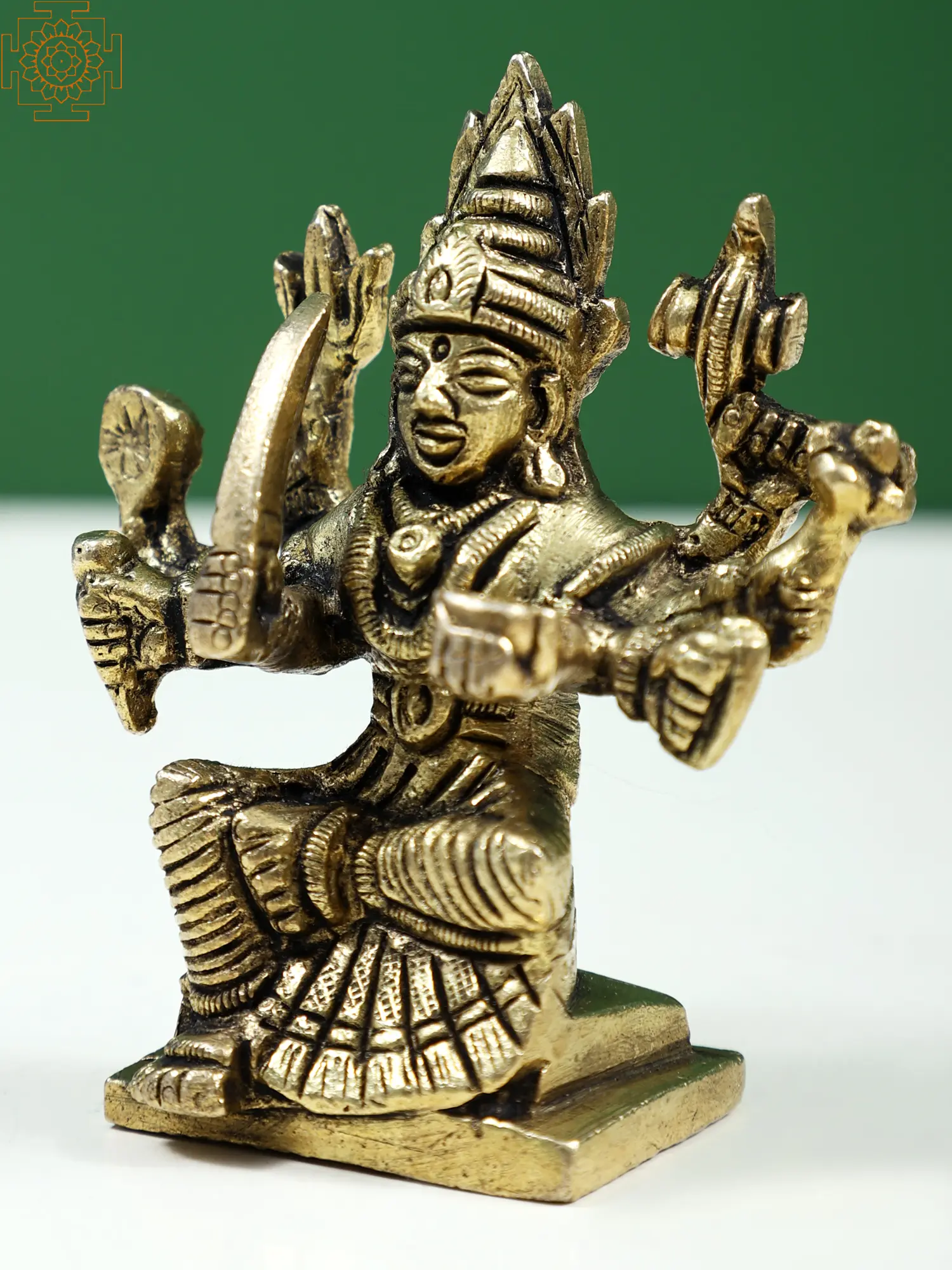3" Small Brass Mariamman Statue (South Indian Goddess Durga)