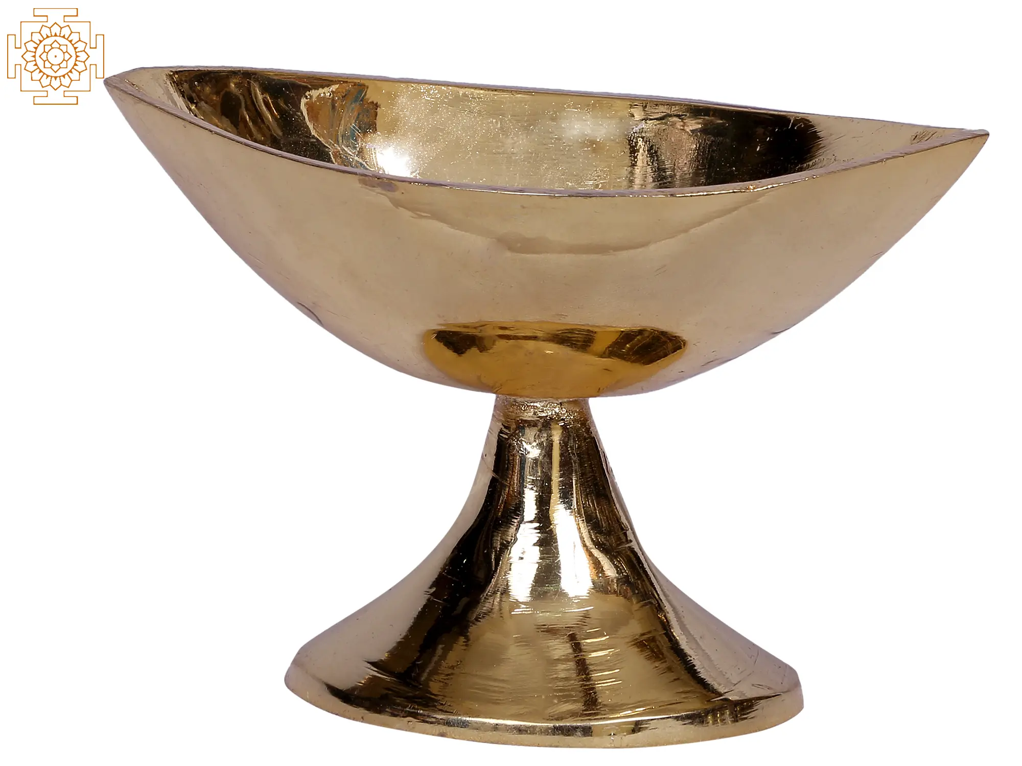 Shiva worshippers see the Vibhooti or Vibhuti as the sacred ash. Lord Shiva is said to apply Vibhooti on himself because it represents detachment and emptiness. This Vibhooti Madal, fashioned of brass and equipped with a sturdy pedestal, is used to preserve Lord Shiva's blessings in the form of Vibhooti. The boat-shaped container can hold a substantial amount of Vibhooti. It is a multifunctional jar that may hold Kumkum or turmeric for ceremonial purposes.