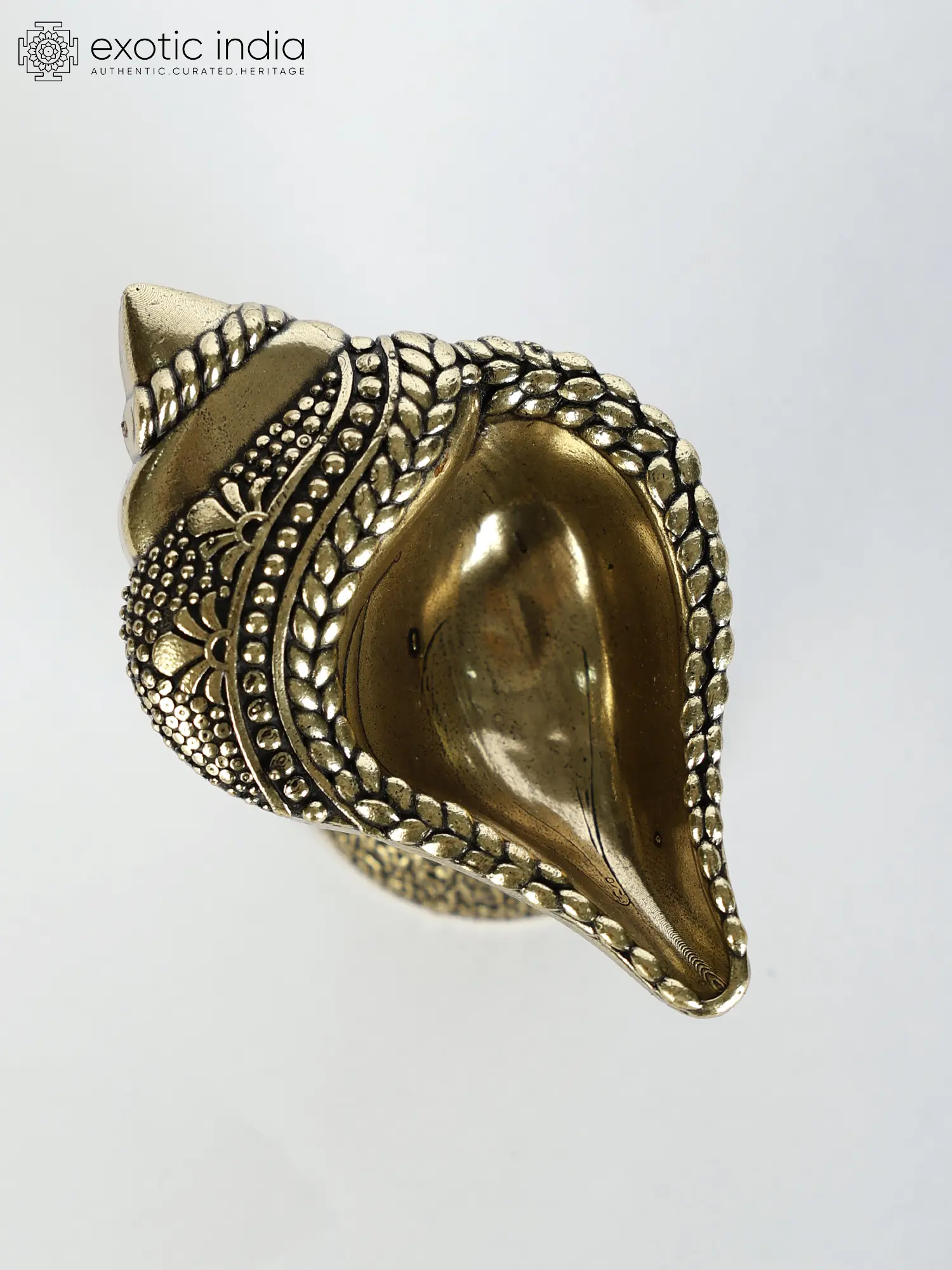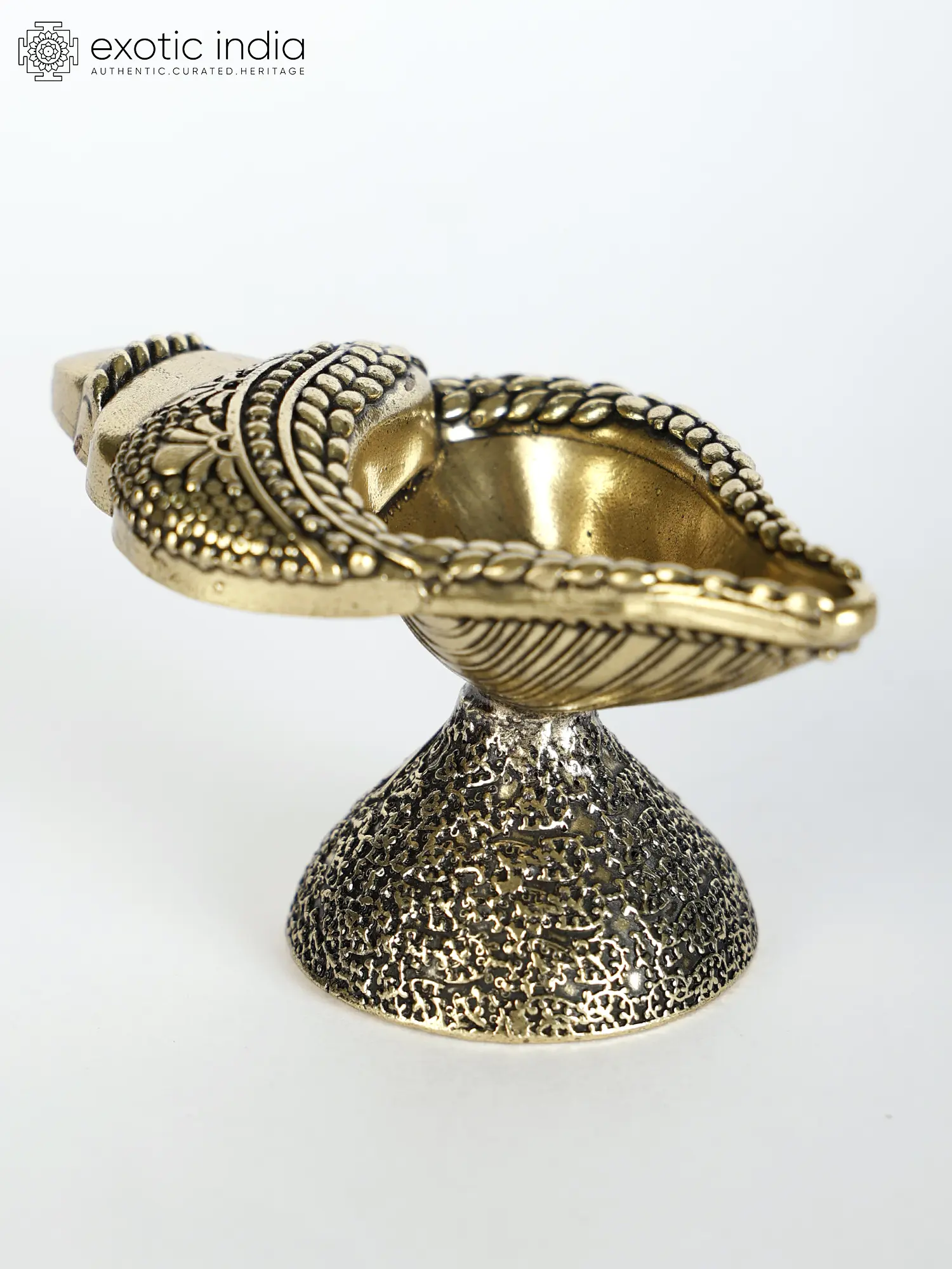 Some pieces of utility transcend the boundaries of creativity and craftsmanship, and this Small Conch Shape Brass Diya (Lamp) is a prime example. Exquisitely fashioned into the shape of an ornate conch, the diya features a cavity that serves as the oil basin.