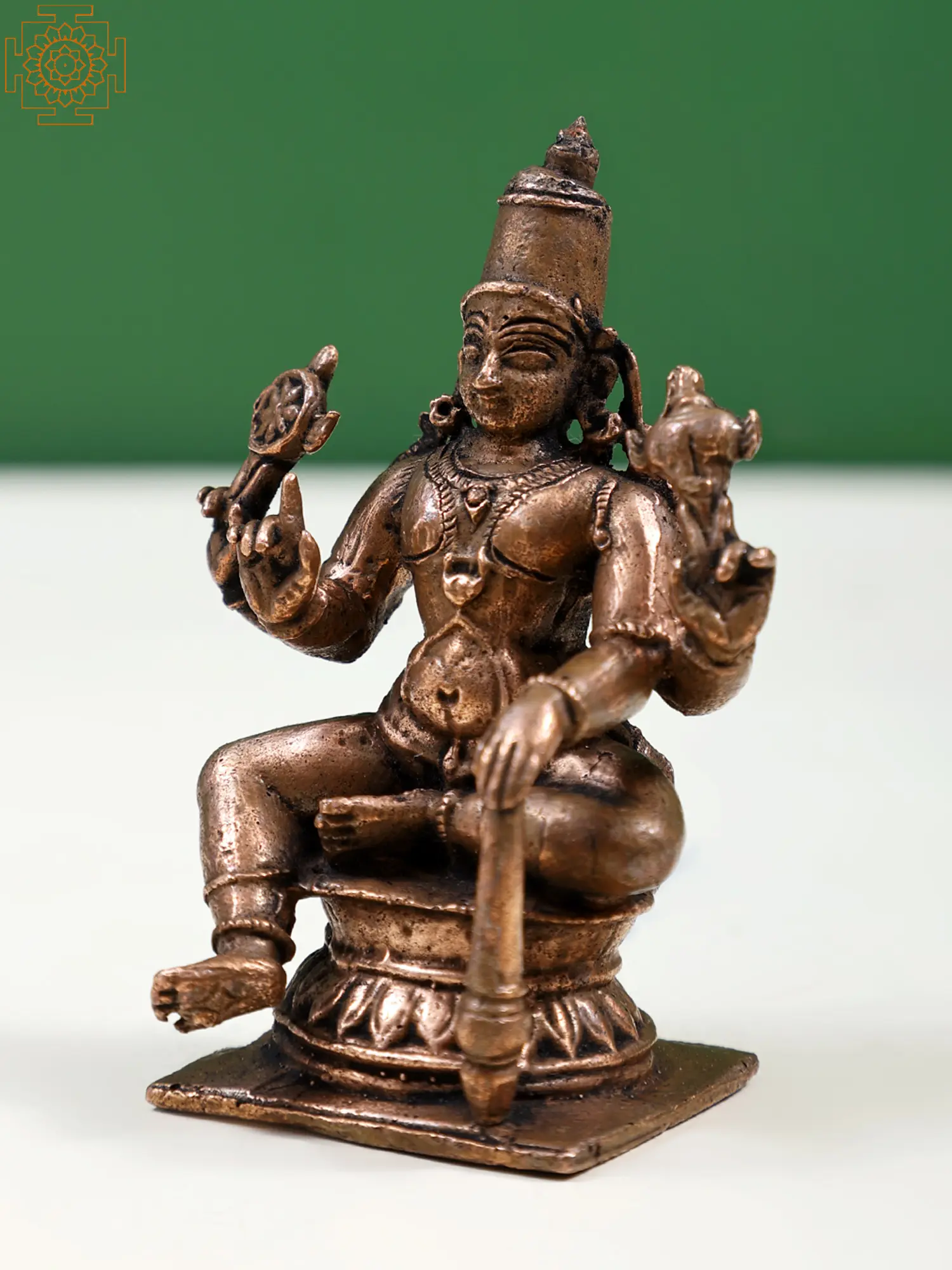 Each idol is meticulously handcrafted by skilled artisans, ensuring that no two pieces are exactly alike. This artisanal approach imbues the statue with a unique character and a sense of personal devotion. The rich, earthy tones of the copper are accentuated by the subtle variations in the patina, giving the idol an antique charm that speaks of its timeless appeal. The small size makes it a versatile addition to any altar, bookshelf, meditation corner, or even a desk, serving as a constant reminder of divine presence and unwavering protection. Place this idol in your home or office to attract positive energy, foster peace, and invoke the blessings of Lord Vishnu for a life filled with harmony and well-being. Its presence is not just decorative but deeply spiritual, offering a tangible connection to the divine.