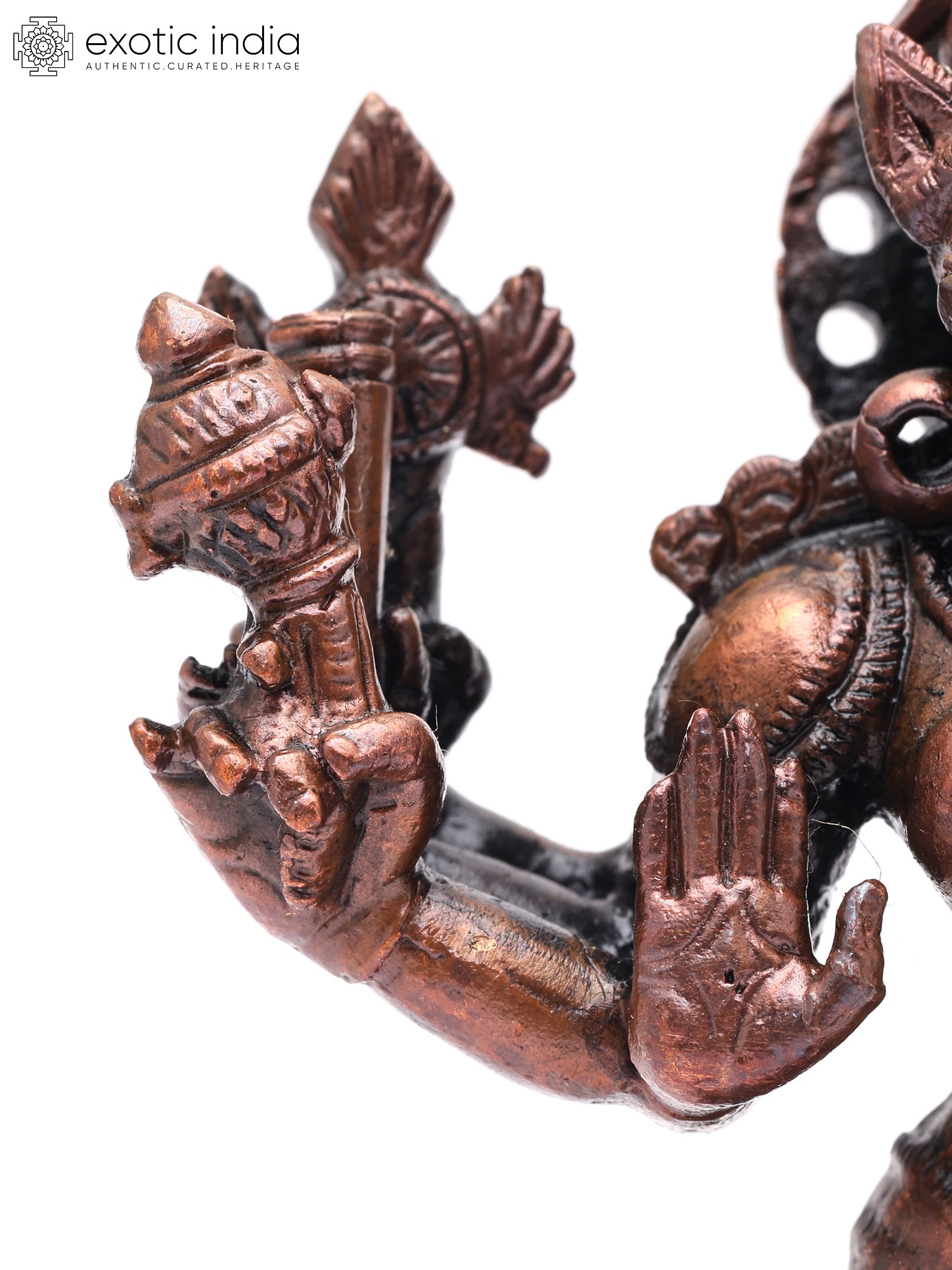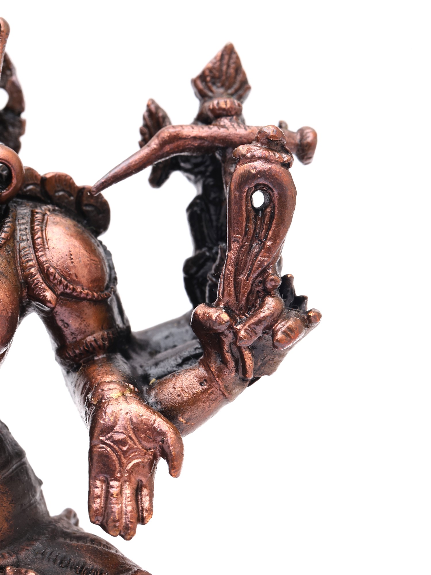 This handmade copper statue is a testament to traditional craftsmanship. The rich patina of the copper lends a timeless aura, making it a captivating piece for any altar, meditation space, or as a decorative accent in your home. The intricate details, from the delicate carvings on her divine form to the symbolic items held in her many hands, speak to the dedication and reverence infused into its creation. The compact size makes it a versatile piece, perfect for personal devotion or as a meaningful gift for those seeking spiritual solace and divine protection. Invoking the energy of Goddess Varahi through this sacred image can bring courage, clarity, and resilience into your life.