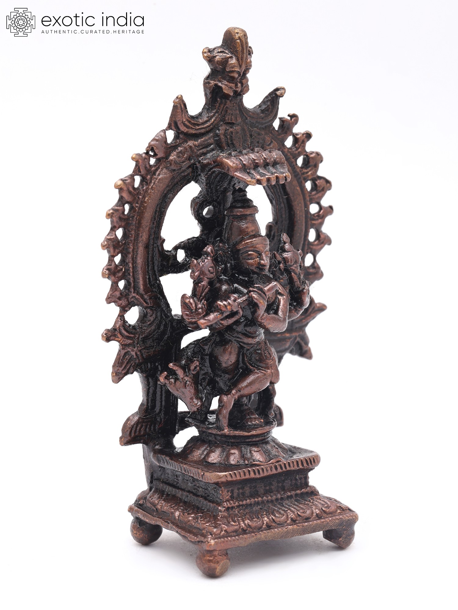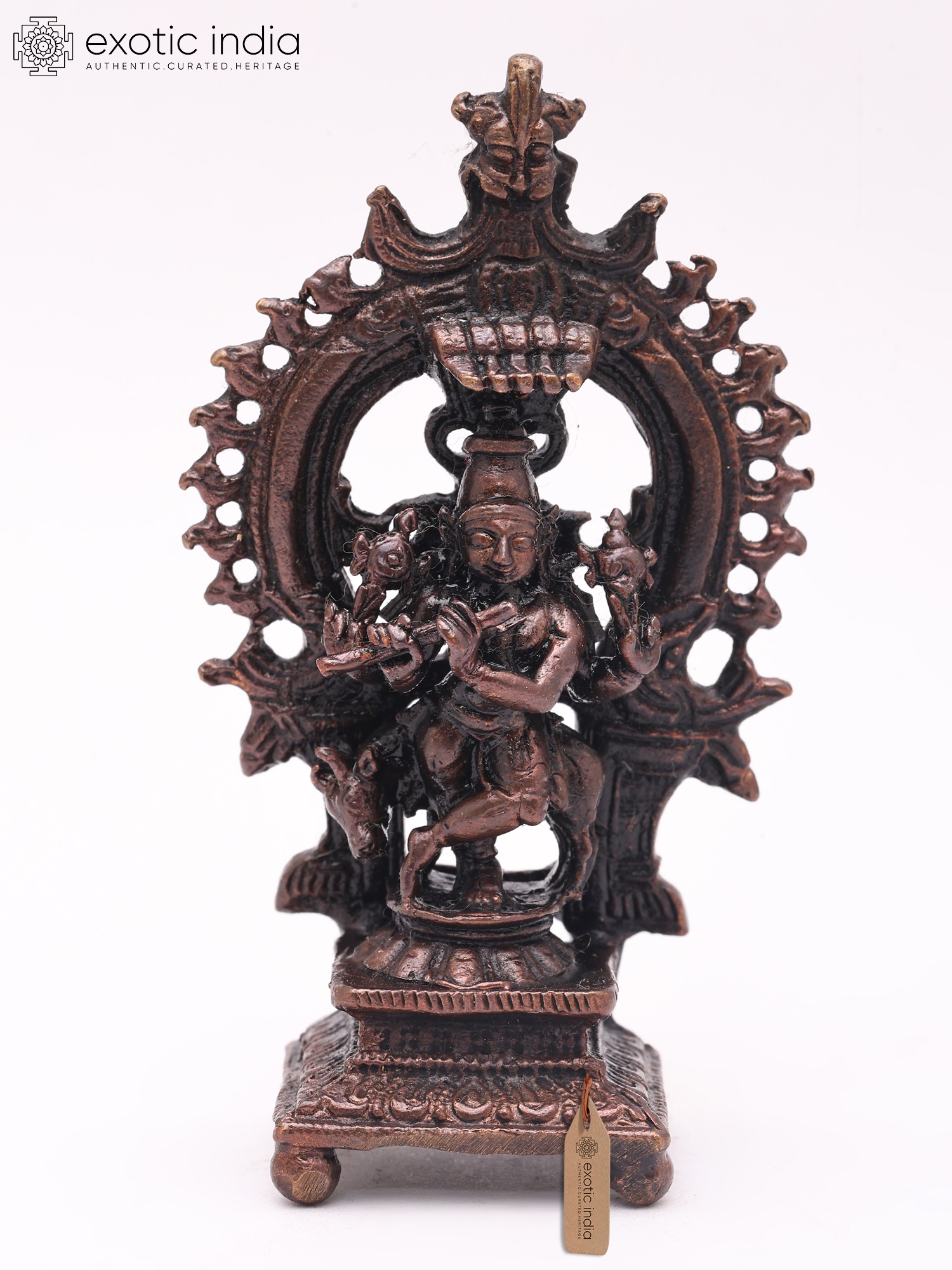 4" Four Armed Lord Venugopala (Krishna) with Flute | Copper Statue | Made in India