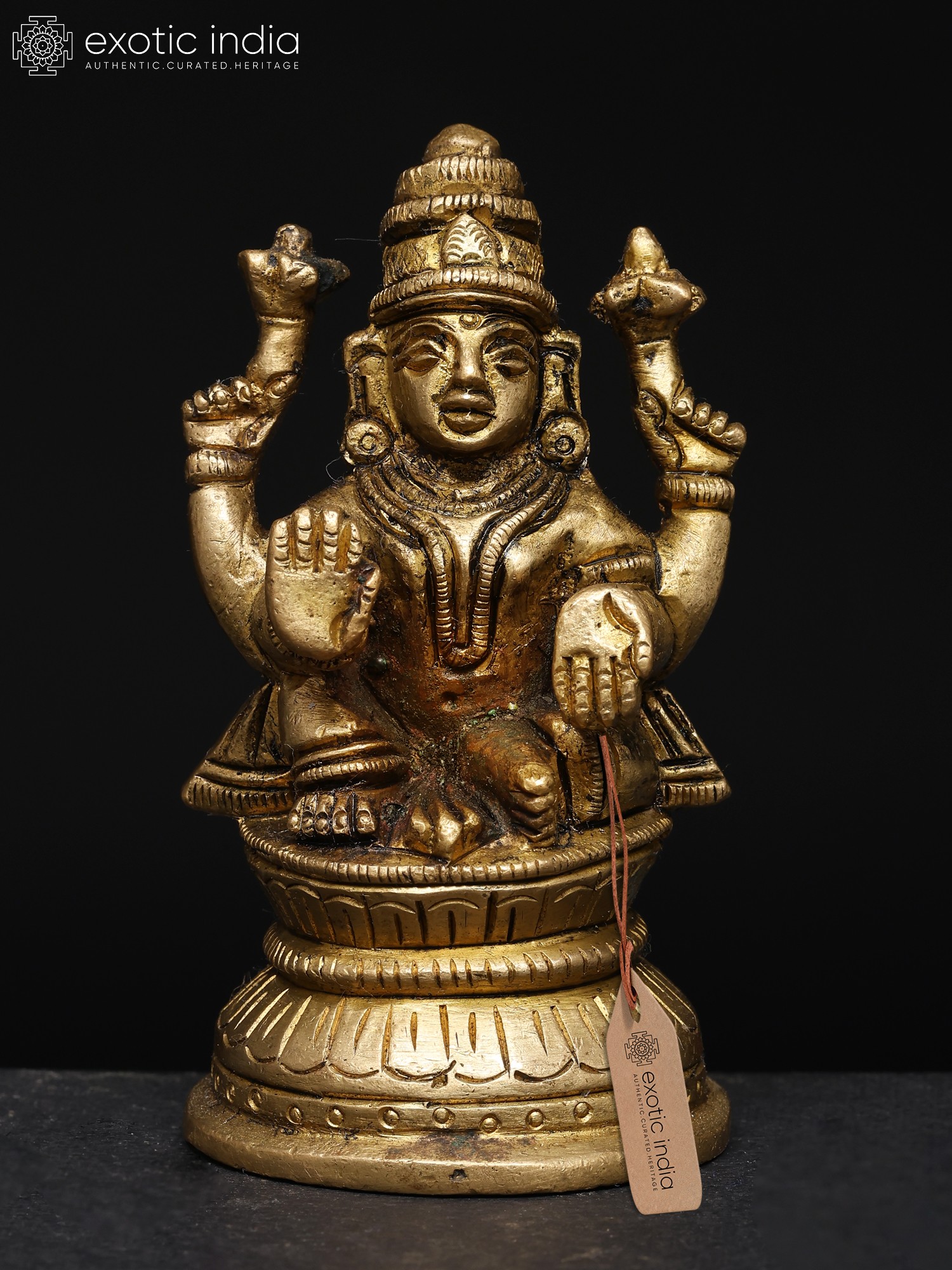 4'' Brass Elephant With Lakshmi Ganesha Engraved